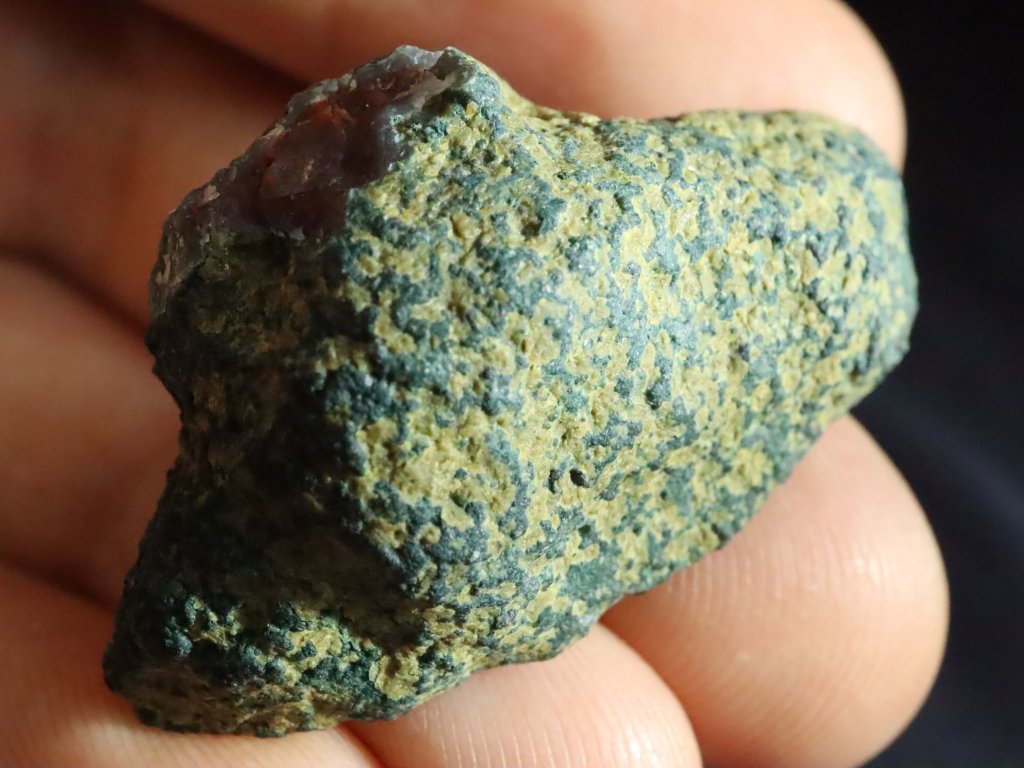Vzorek nejlépe vynikne na světle (Na sluníčku nebo při nasvícení baterkou), ve stínu působí tmavším temným dojmem.