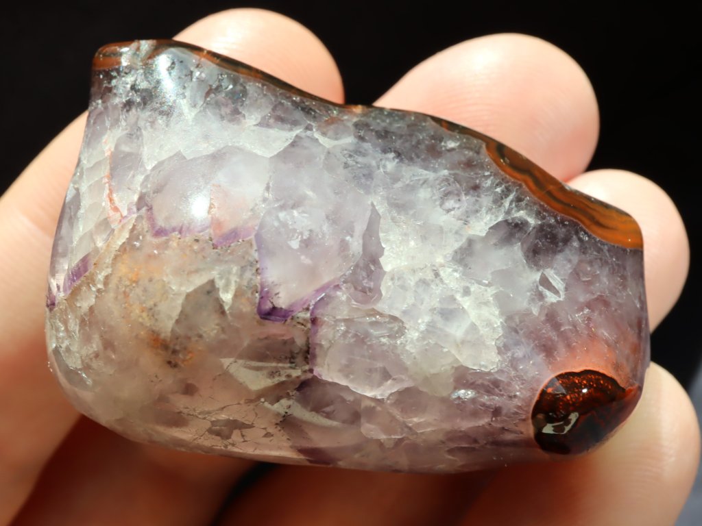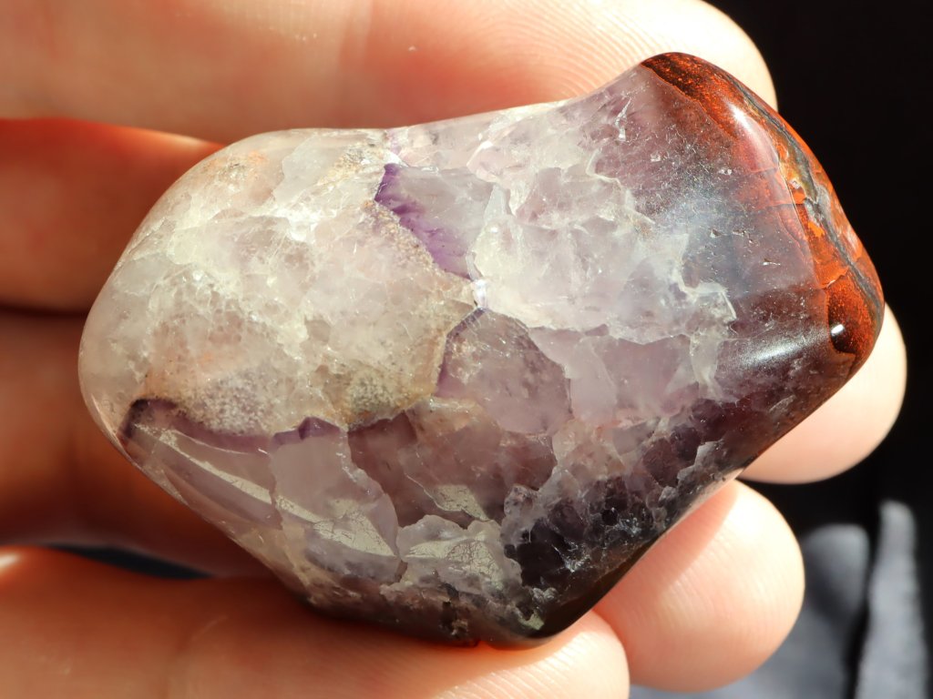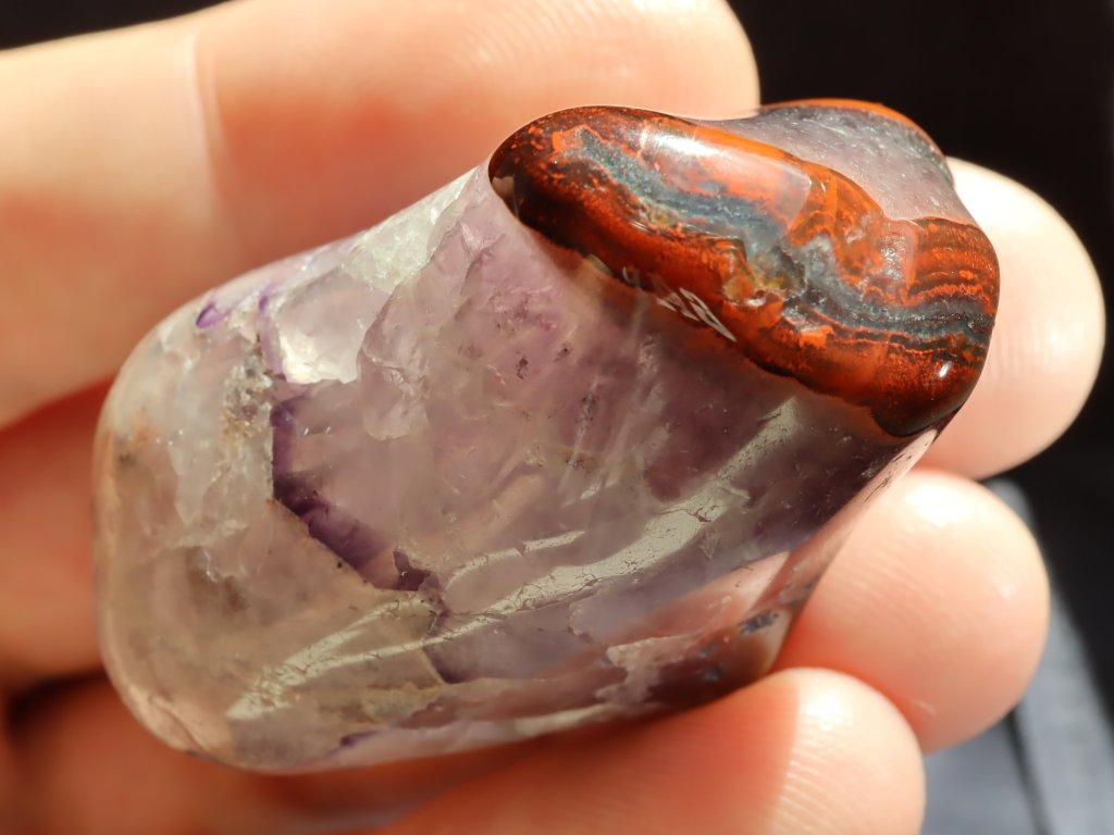 Tromlovaný ametyst v kombinaci s křemenem a jaspisem z lokality Jickovice nedaleko Milevska v jižních Čechách.
