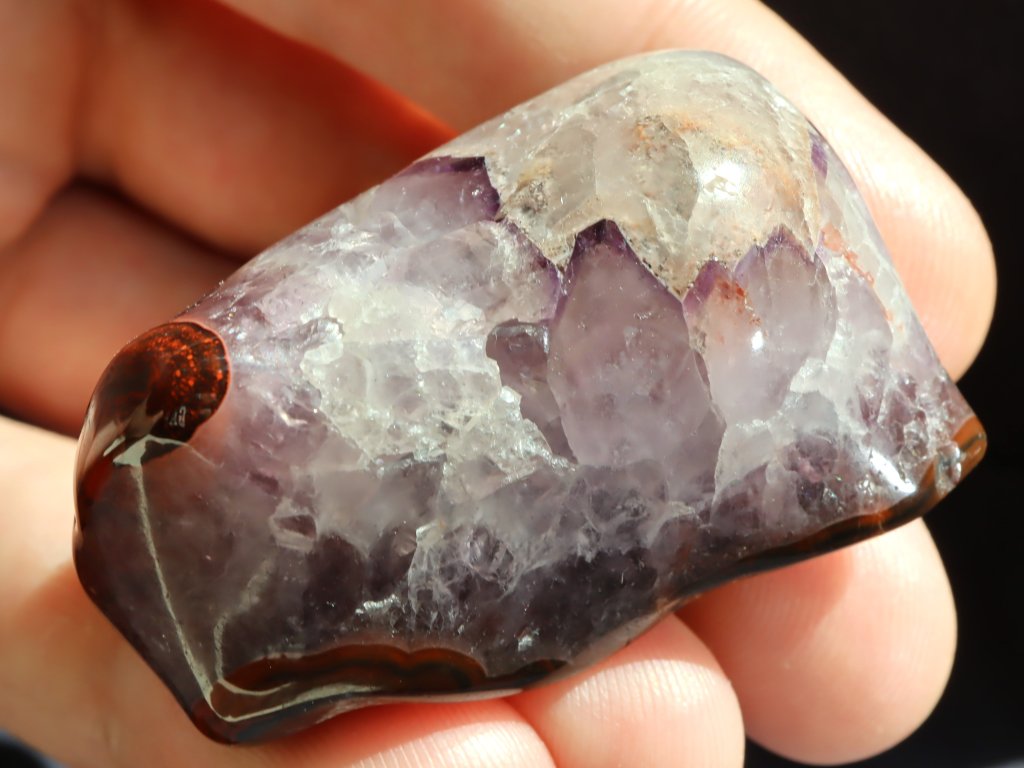 Ametyst má přirozený jemně fialový odstín se zajímavým sytějším lemem / kresbou. Nejlépe vynikne a zazáří na sluníčku nebo při nasvícení / prosvícení baterkou.