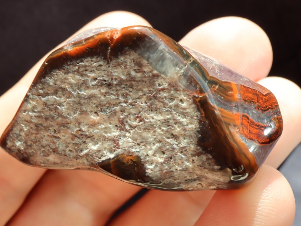 Na vzorku však můžete obdivovat i opravdu krásnou ukázku červeno-hnědého jaspisu s nádhernou kresbou, která se táhne dokola celého kamínku.