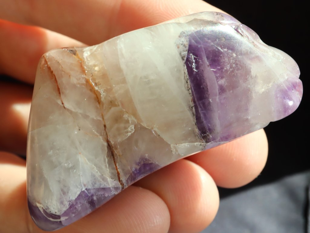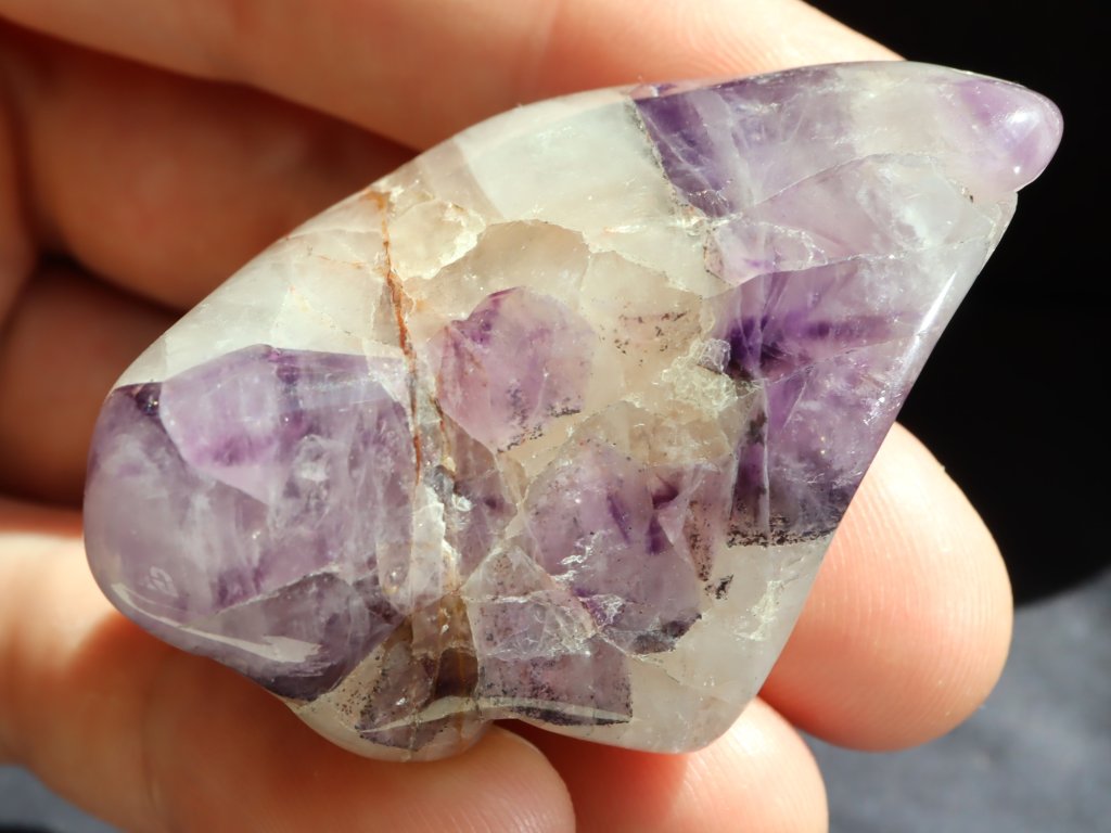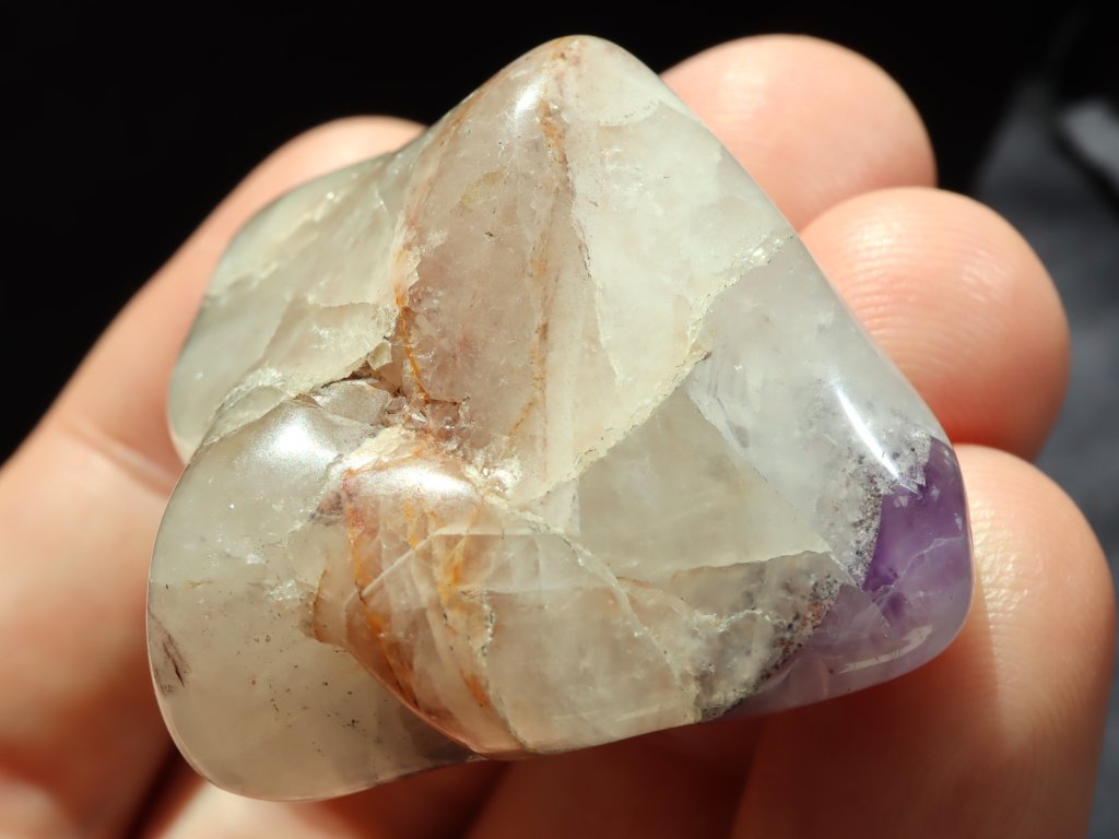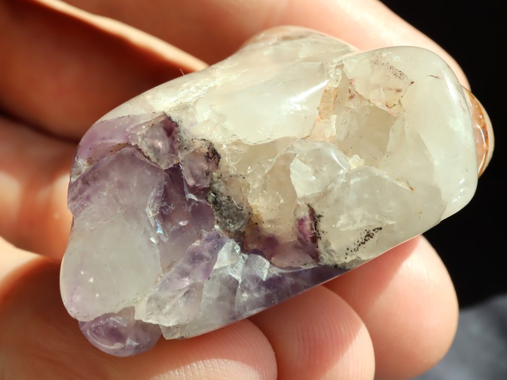 Ametyst ve spojení s mléčným křemenem - tromlovaný kámen