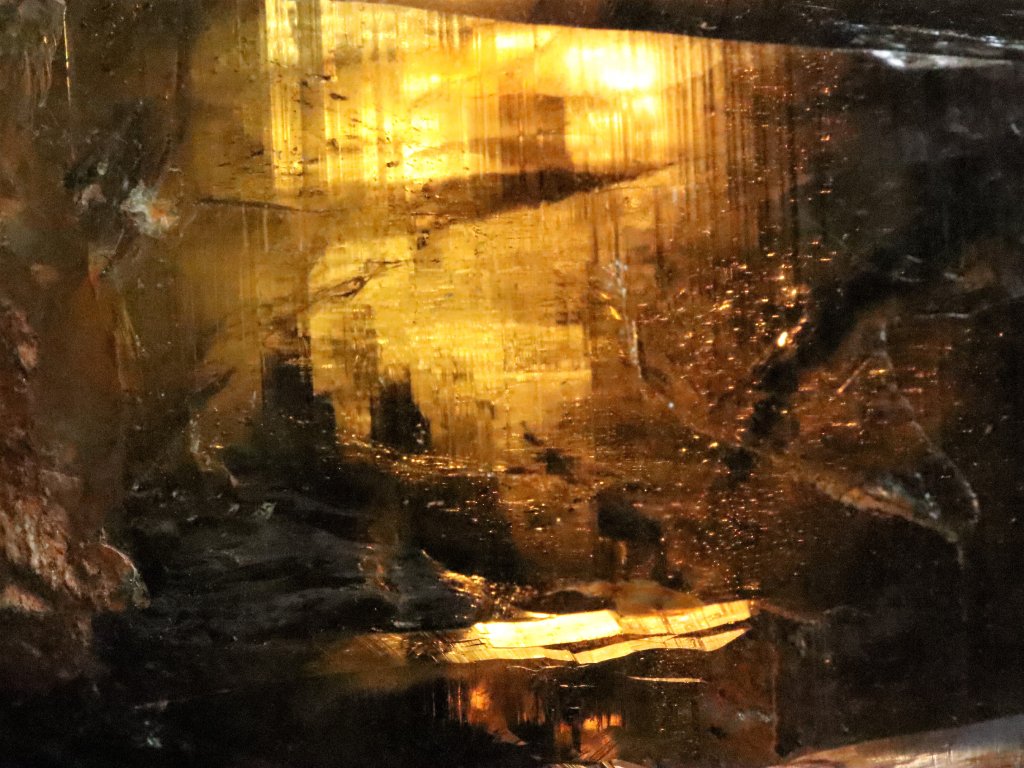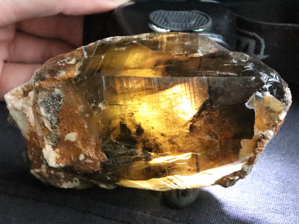 Díky krásně lesklým stěnám lze při prosvícení kamene sluníčkem nebo baterkou i poměrně solidně nahlédnout dovnitř a pozorovat tak pestrý a bohatý vnitřní svět. Ten ukrývá nejen slušnou čistotu, ale také množství půvabných mlhovinových závojů, peříček či dalších inkluzí (úkazů).