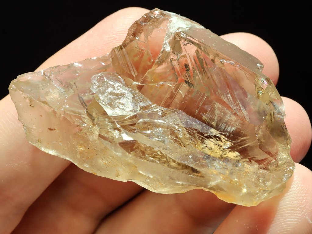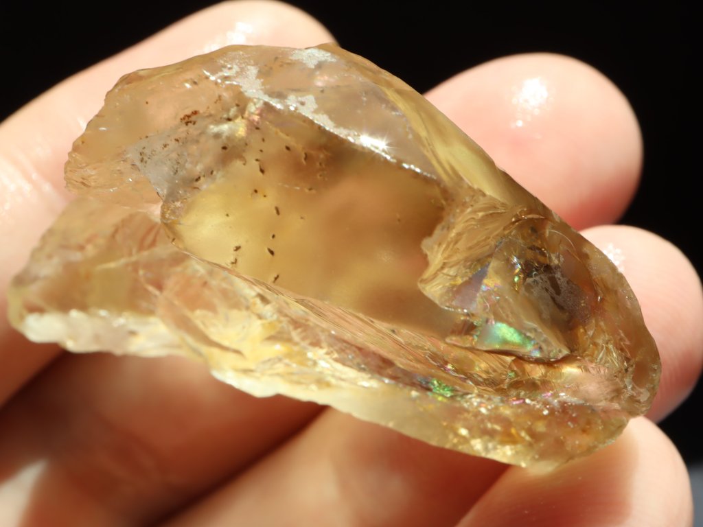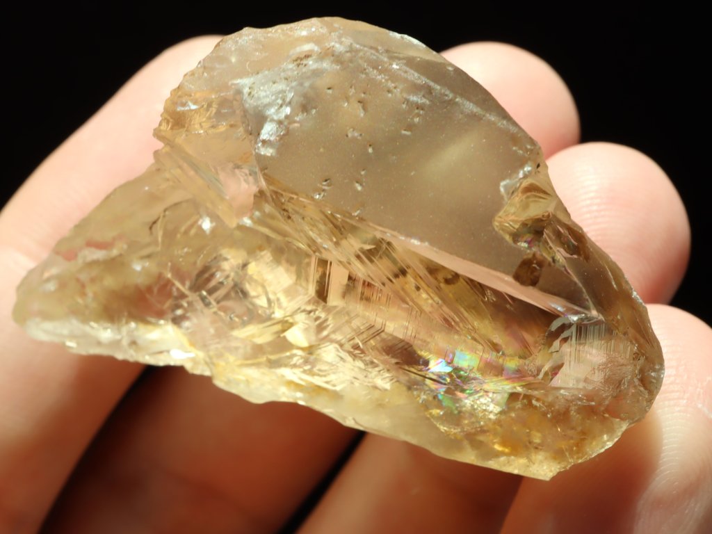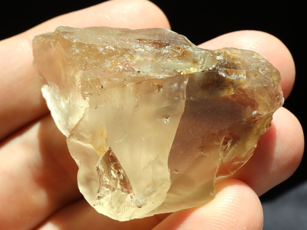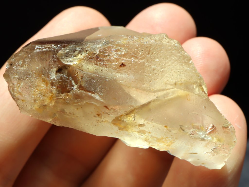 Uvnitř má citrín vysokou až drahokamovou čistou s pouze malým množstvím peříček. Díky takto vysoké čistotě je citrínek i skvěle průsvitný (sluníčkem či například baterkou).