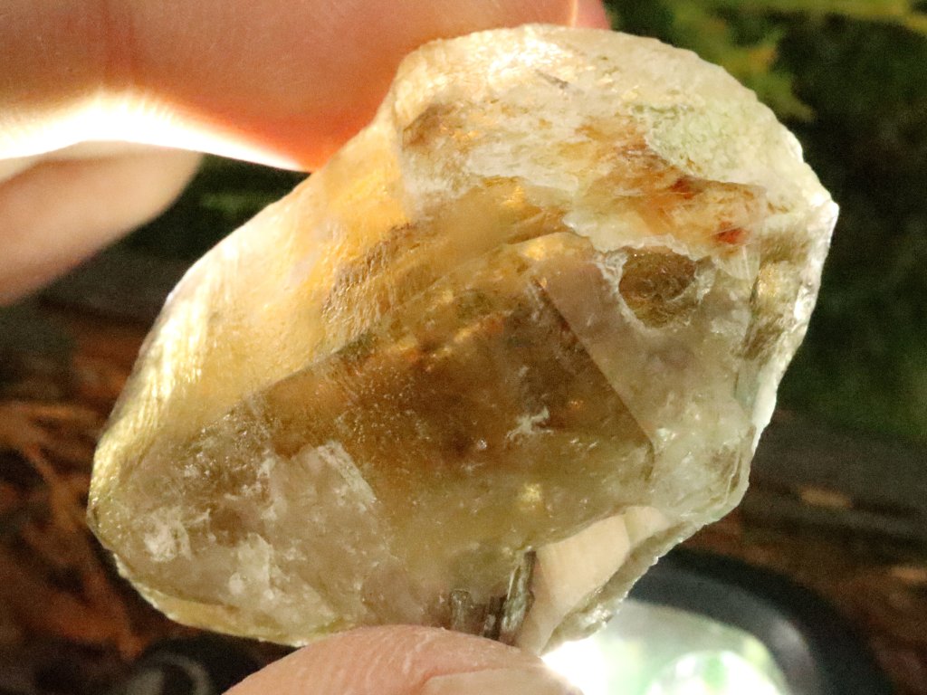 Vzorek je sluníčkem či baterkou hezky průsvitný, viz. poslední dva snímky.
