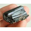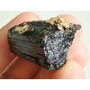 Pohledná ukázka surového černého turmalínu skorylu z naleziště Pikárec (Vysočina).