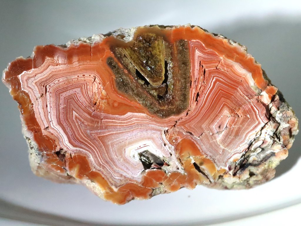 Polovina achátové pecky z Doubravice (ČR), která vás upoutá atraktivní kresbou.