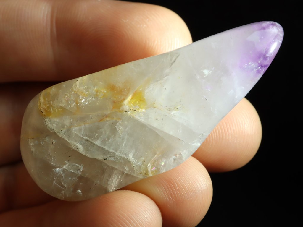 Kamínek je částečně průsvitný (sluníčkem či baterkou), místy lze pak i lehce nahlédnout pod povrch (do vnitřního světa) a pozorovat tak různé úkazy jako mlhoviny či peříčka.