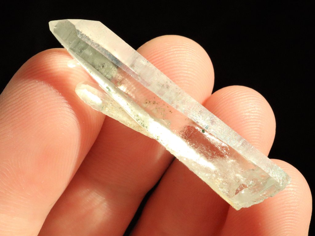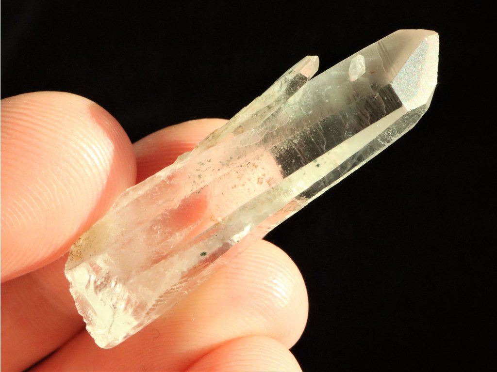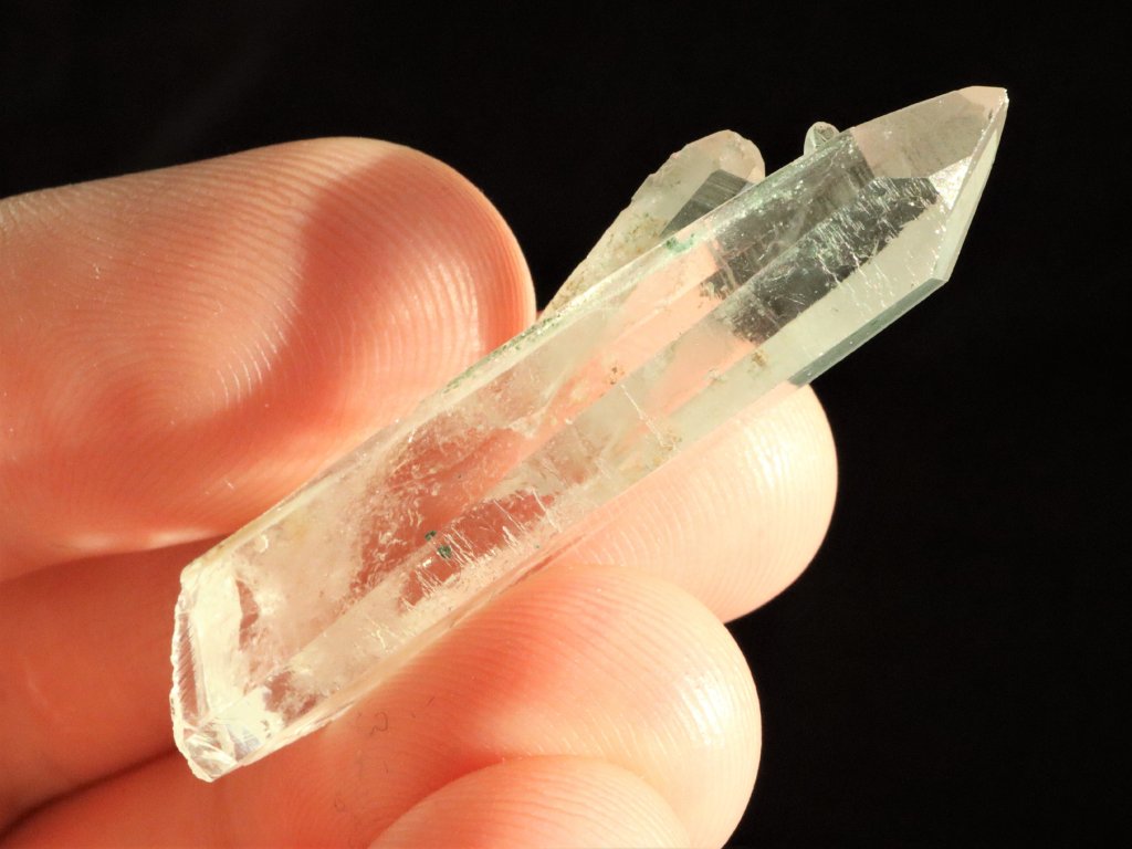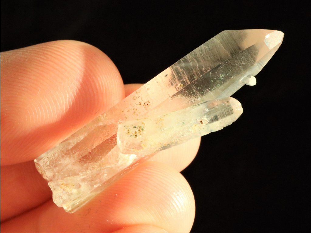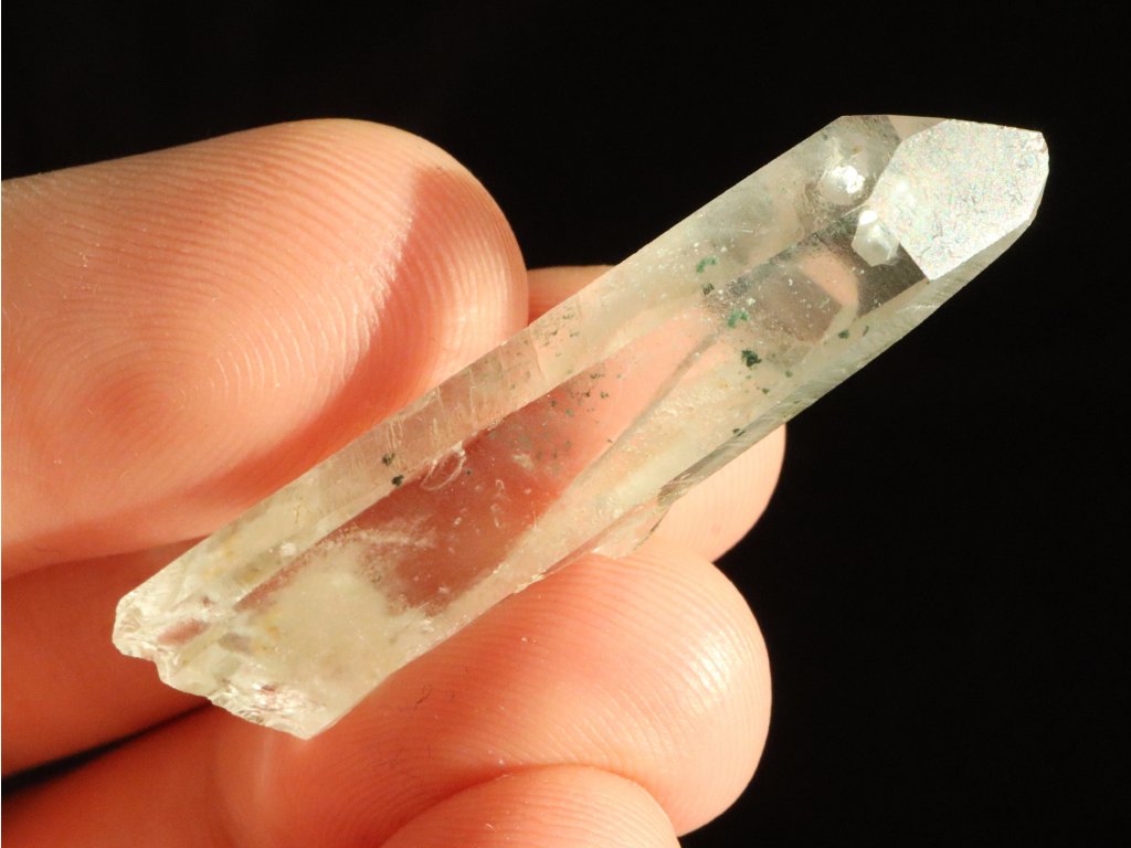 Kamínek je navíc výborně průsvitný (sluníčkem nebo baterkou) a díky dobrému lesklu stěn lze i skvěle nahlédnout do jeho vnitřního světa. Tam se můžete kochat vskutku vysokou tzv. drahokamovou čistotou s pouze nepatrným množstvím mlhovinek.