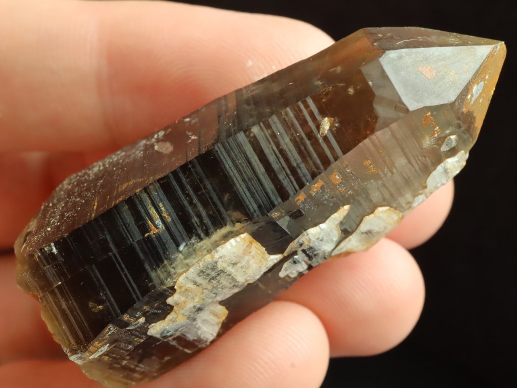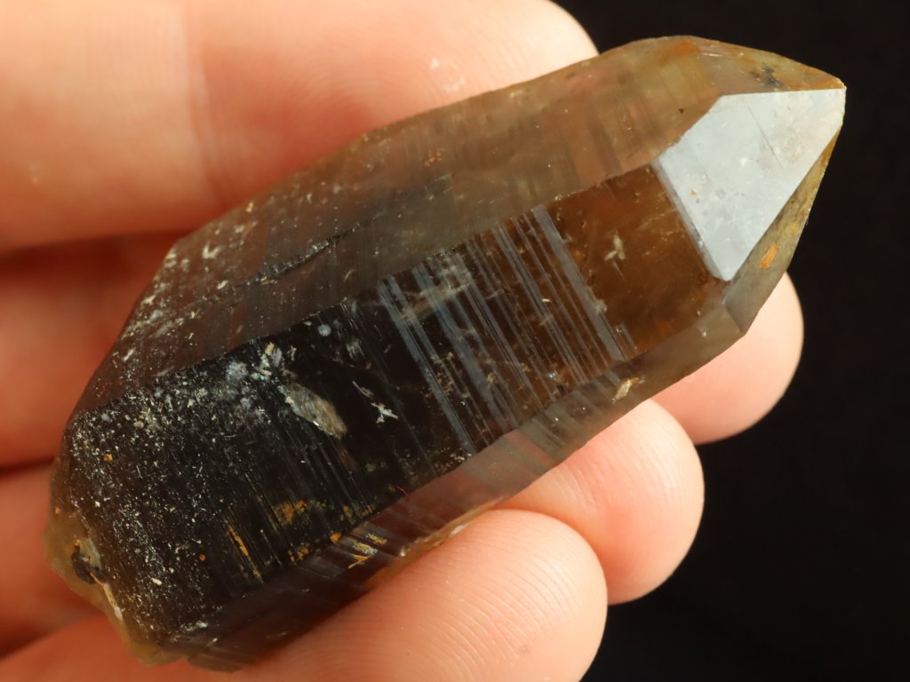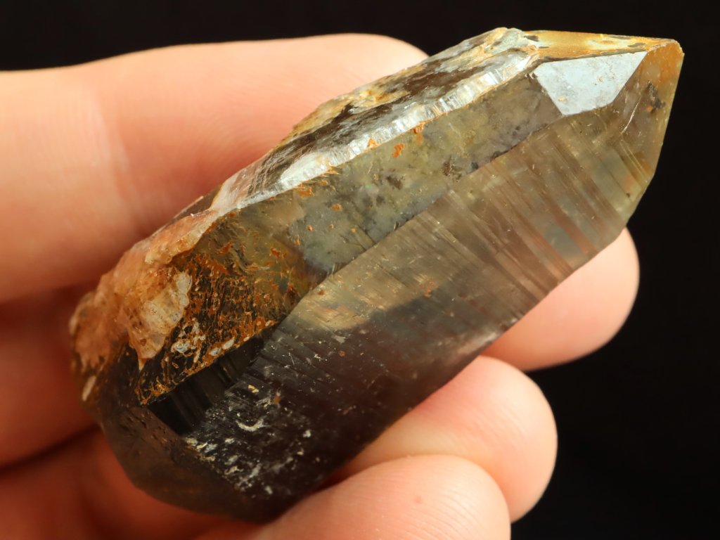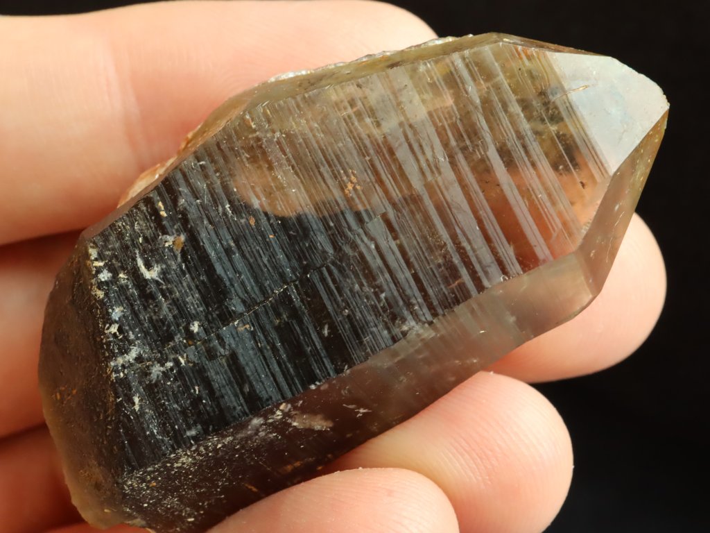 Dokonalý krystalek záhnědy / morionu se zajímavým rýhováním - Isis