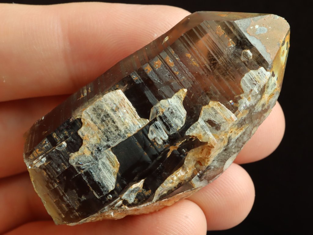 Jedná se o dokonale zachovalý krystal s délkou lehce přes 5 centimetrů, který se svým zbarvením řadí na pomezí klasické záhnědy a vzácné černé záhnědy označované jako morion.