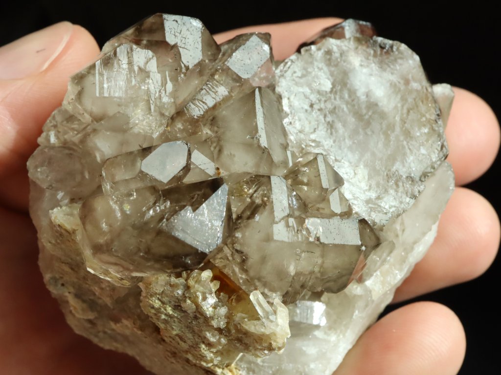 Jedná se krásnou krystalovou záhnědu, která se pyšní vzácným a estetickým elestiálním (stupňvitým) růstem.