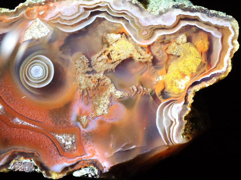 Uvnitř totiž kamínky skrývají působivou a pro acháty typickou kresbu, často i se zajímavou kombinací barev. Můžou se zde někdy vyskytovat i příměsy dalších minerálů nejčastěji bílého až čirého křišťálu, fialového ametystu, jaspisu či karneolu.