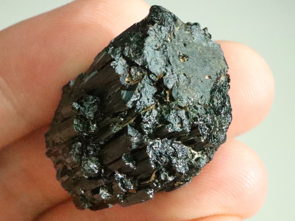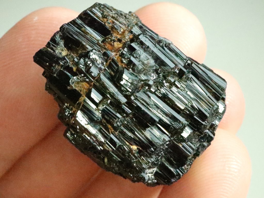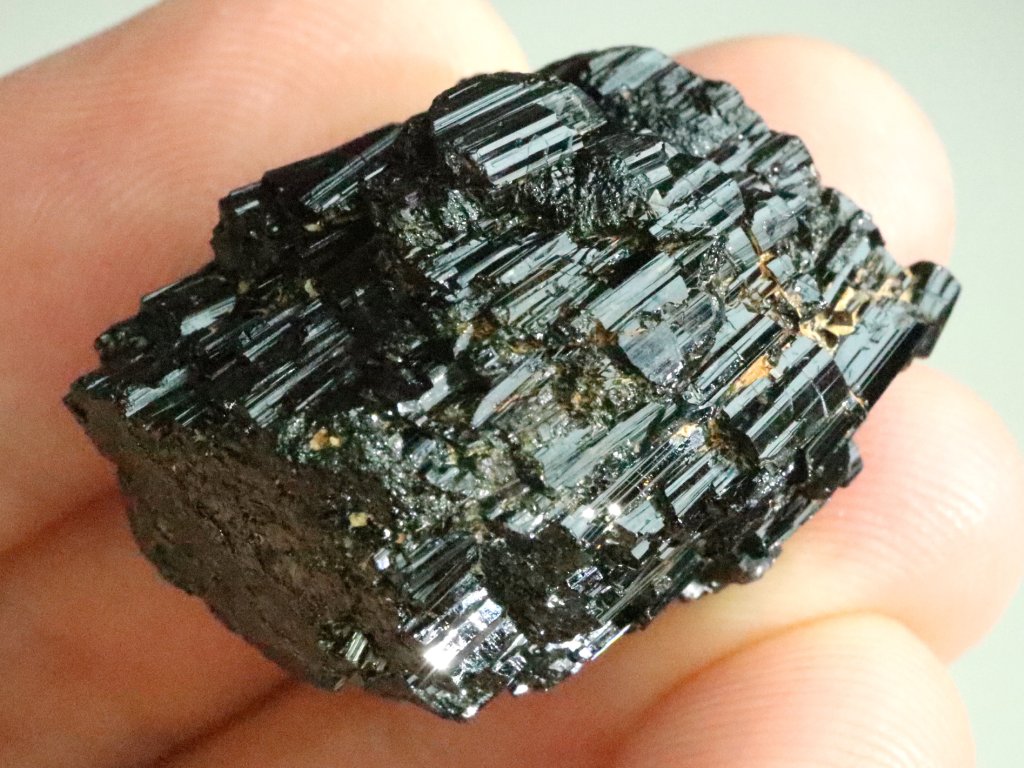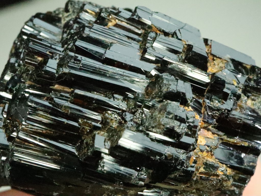 Vzácná ukázka přírodního černého turmalínu z naleziště Bory na Vysočině.