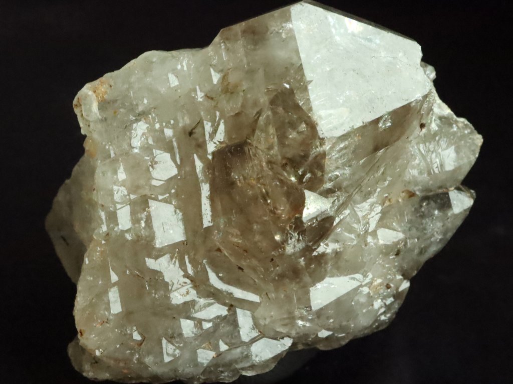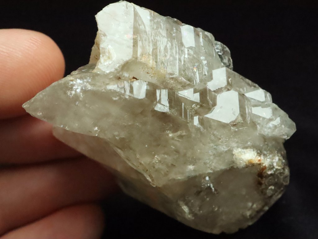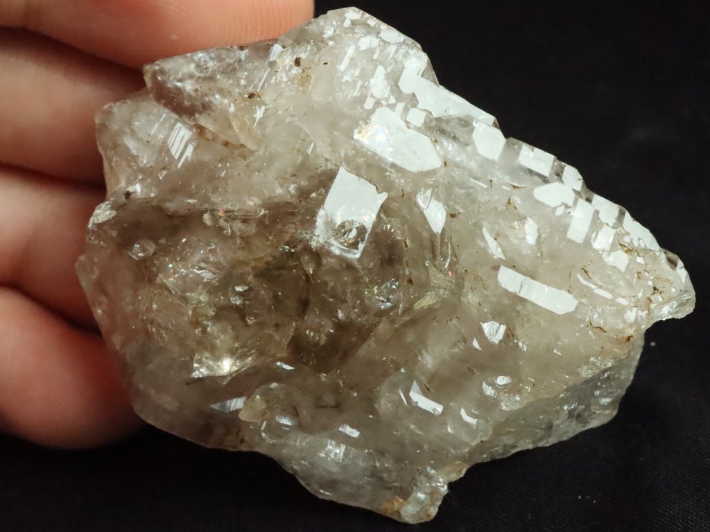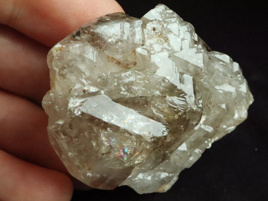 Krystal záhnědy je lesklý, sluníčkem či baterkou částečně průsvitný a uvnitř decentně zakalený mléčným křemenem.