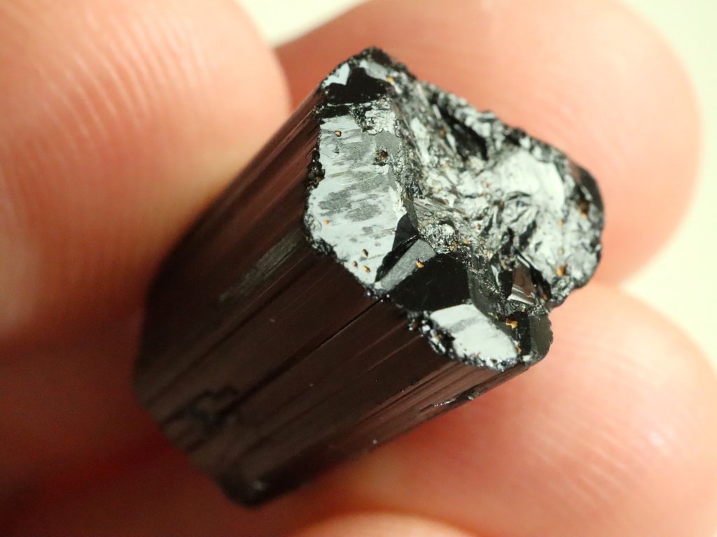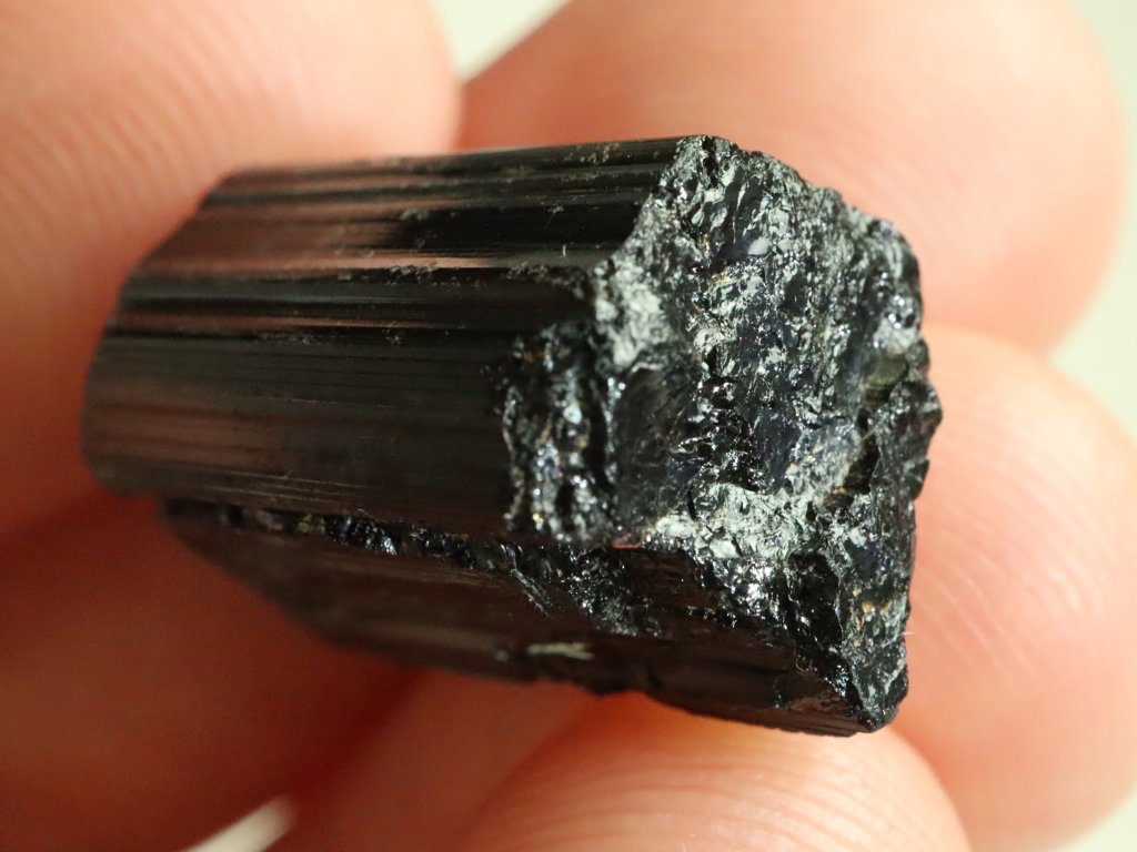 Surový a neupravený černý turmalín odborně označovaný jako "skoryl" pocházející z uznávané kamínkářské lokality Pikárec (Vysočina).
