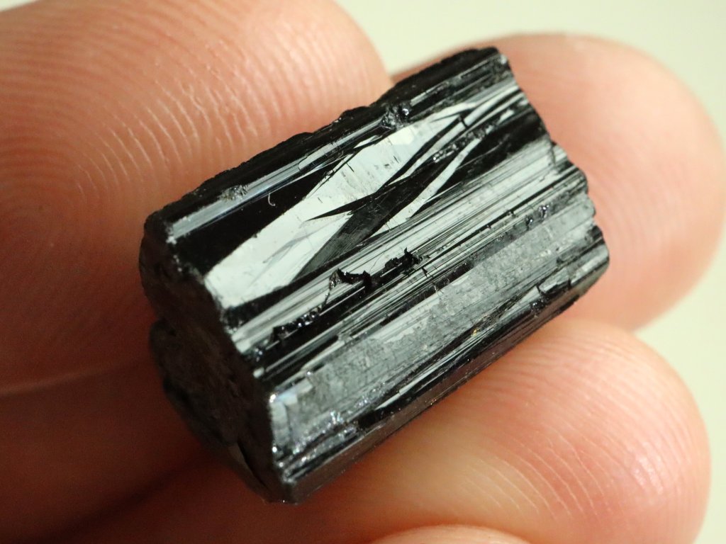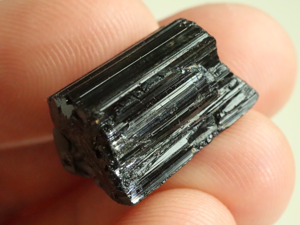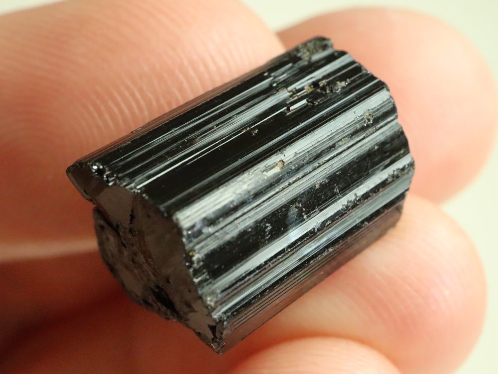Tento turmalín patří sice mezi ty menší kousky, může se však pochlubit pěkným leskem i jemným rýhováním po obvodu.