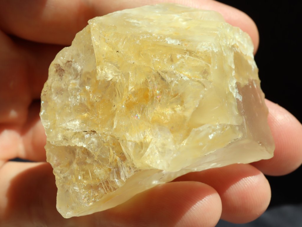 Citrín je (sluníčkem či baterkou) dobře průsvitný, uvnitř pak nabídne i přes mírné zakalení solidní celkovou čistotu.