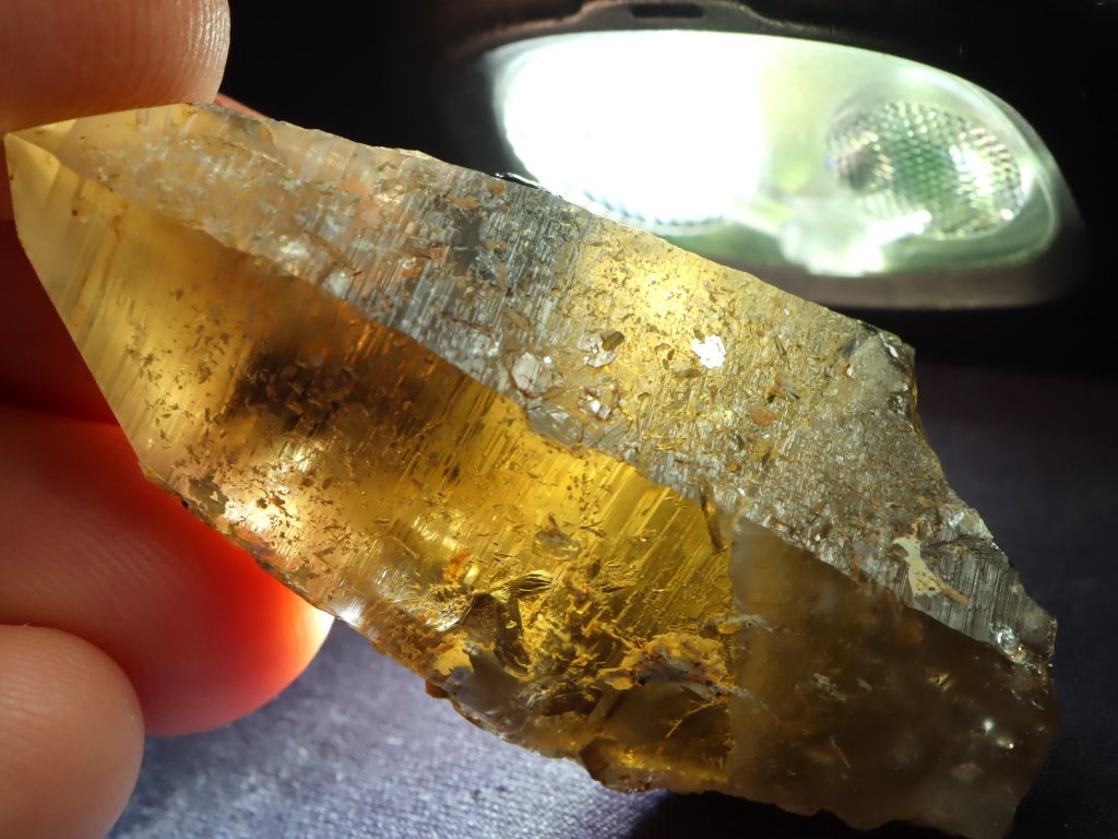 Kamínek má na běžném denním světle / ve stínu hnědé až černé zbarvení, při prosvícení sluníčkem či baterkou se pak rozzáří jemně hnědými až kouřovými tóny - viz foto.