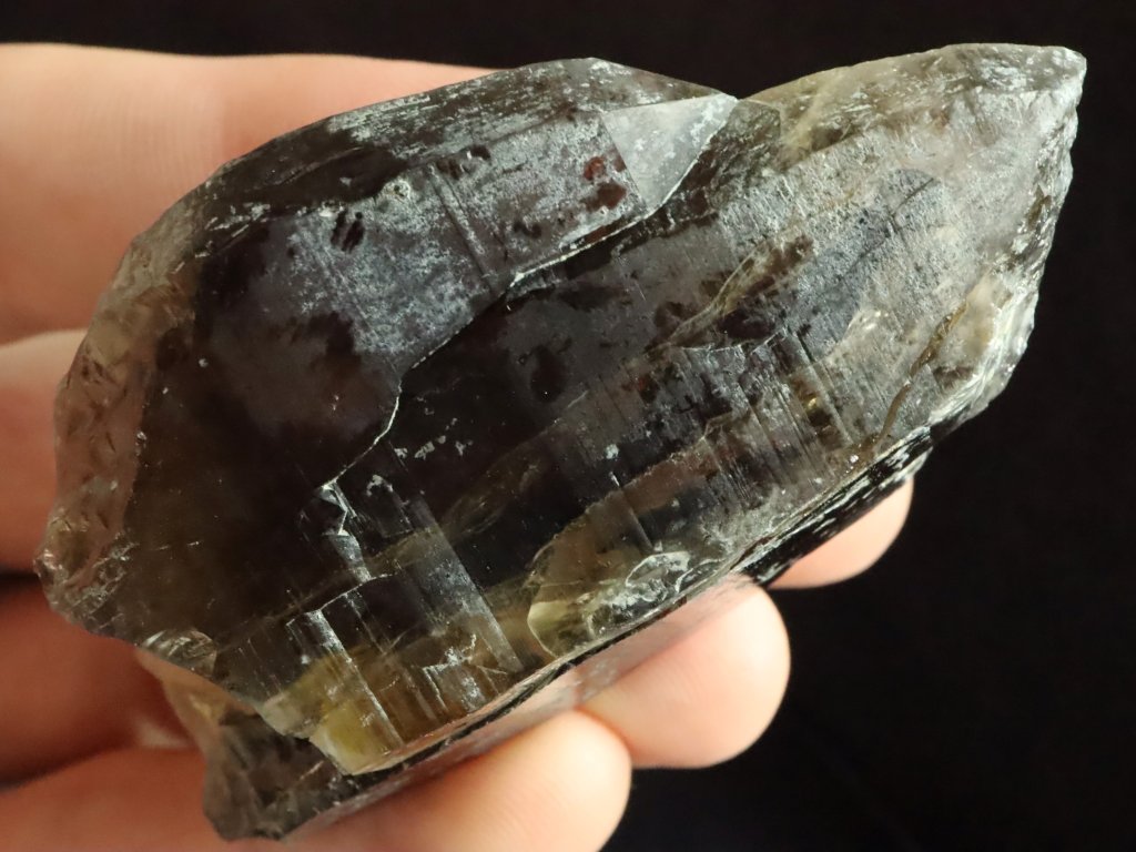 Morion má na běžném denním světle / ve stínu kvalitní černý odstín. Krystaly jsou však i slušně průsvitné sluníčkem či baterkou, což můžete vidět na posledních čtyřech fotografiích.
