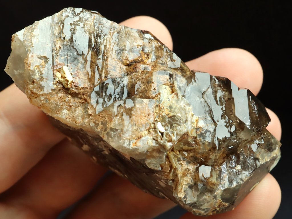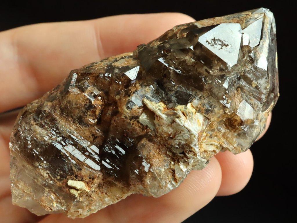 Krystal tmavé záhnědy až morionu s unikátním růstem - Elestial
