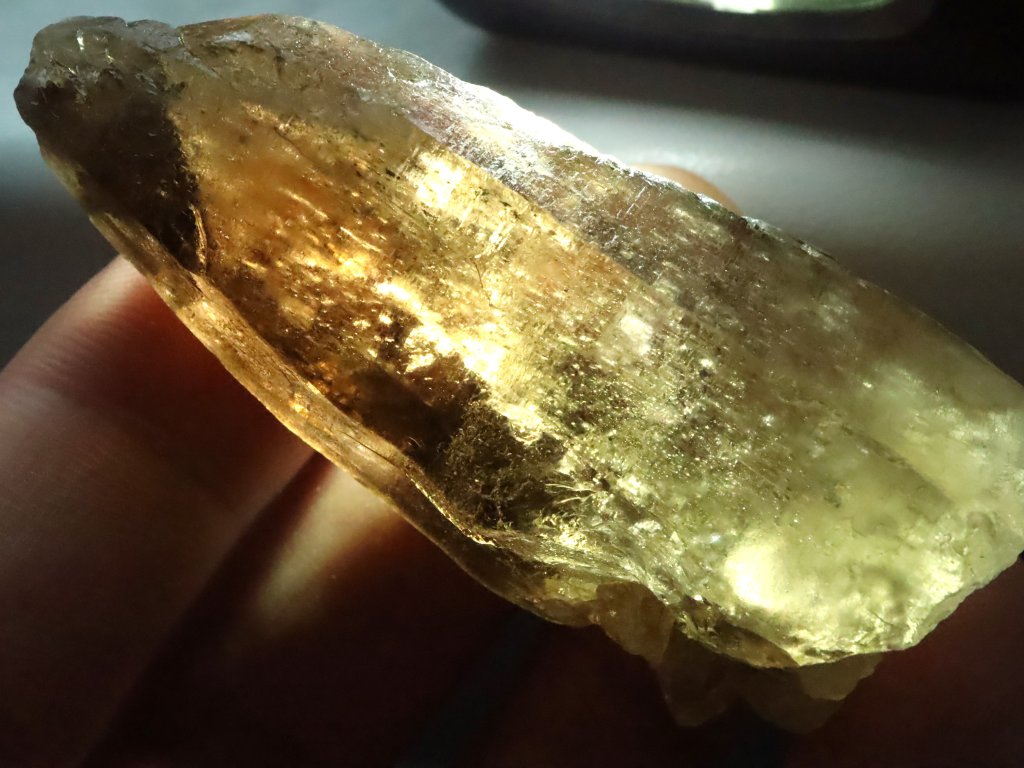 Při prosvícení sluníčkem či baterkou se pak celý krystal krásně rozzáří půvabným jemně hnědým až kouřovým odstínem - viz. tři fotografie.