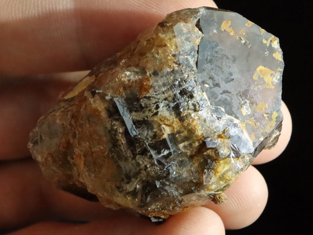 Tento vzorek se svým zbarvením řadí někde na pomezí klasické kouřové záhnědy a vzácného černého morionu (Morion=temná až černá záhněda).