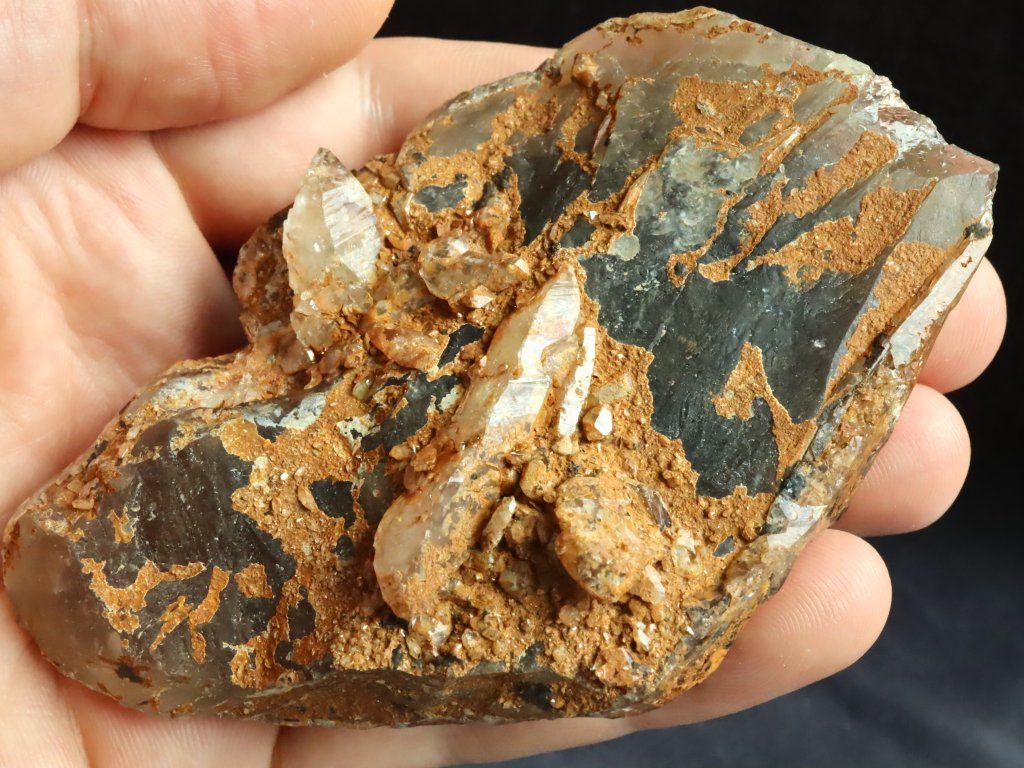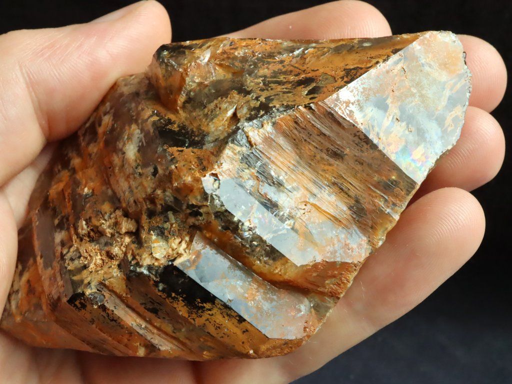 Vzorek záhnědy má tmavě kouřový místy až černý odstín, z velké části je však krystal pokrytý povlakem / slabou krustou hnědo-oranžového limonitu (oxidu železa). Limonit záhnědě propůjčuje nádhernou "přírodní patinu".
