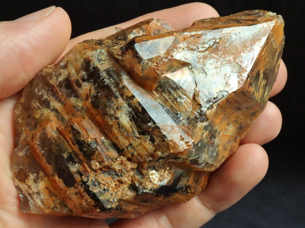 Krystal má z pohledové strany krásně zachovalé obvodové stěny i samotnou špici, zadní strana krystalu je pak otlačená od mateční horniny a místy porostlá drobnými fragmenty krystalků (záhněd).
