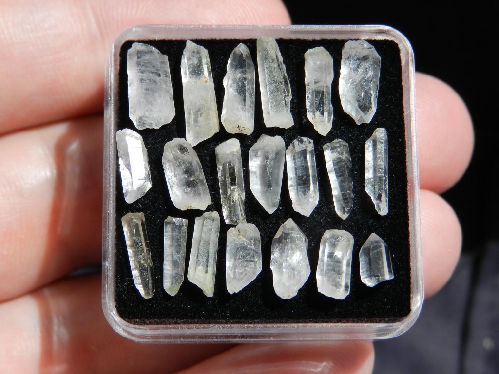 Tato sestava obsahuje hned 20 malých / drobných fragmentů krystalků křišťálu.
