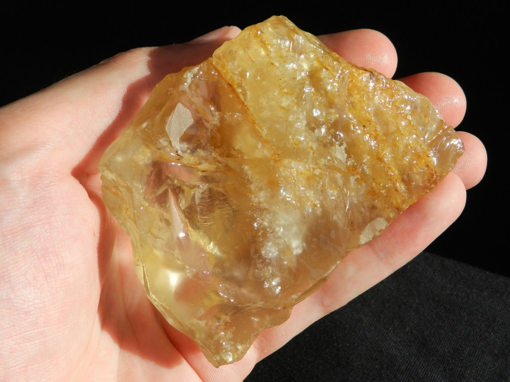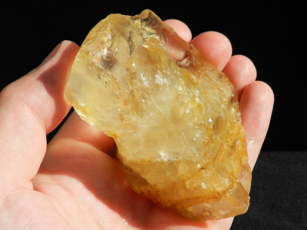 Barvu tohoto citrínu lze zkrátka označit za jednu z nejkrásnějších, kterou můžete v přírodě najít. Každý sběratel minerálů touží mít ve sbírce takto kvalitní sytě žlutý citrín, jen málo kdo má však to štěstí či dar, si takovýto kámen najít.
