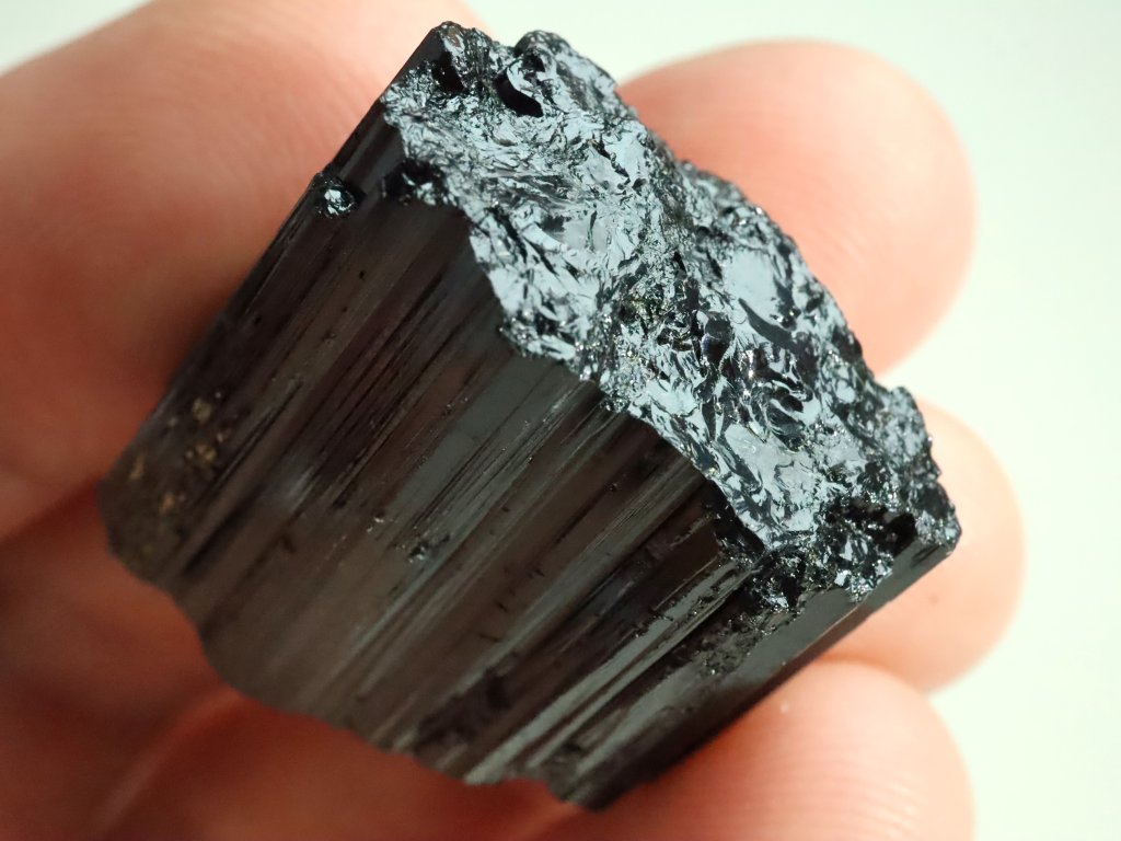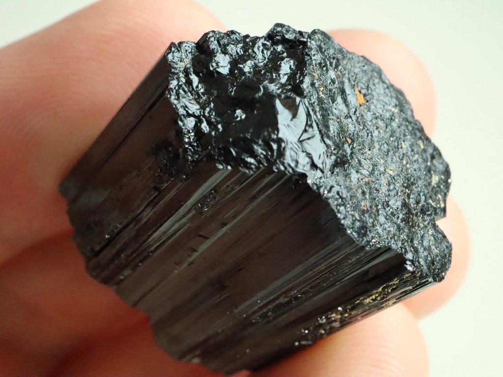 Atraktivní kousek přírodního černého turmalínu skorylu nalezený na věhlasné šutrácké lokalitě Pikárec v oblasti Vysočiny.