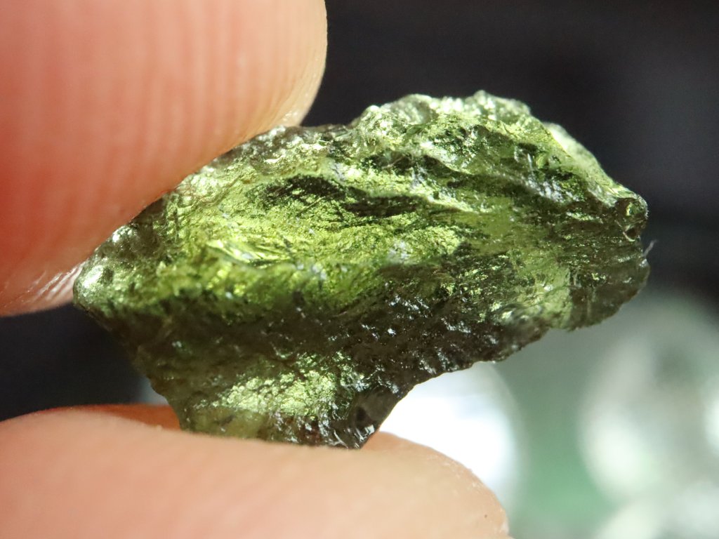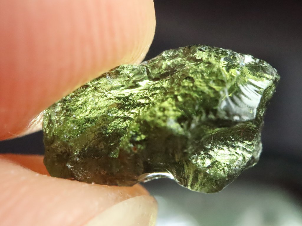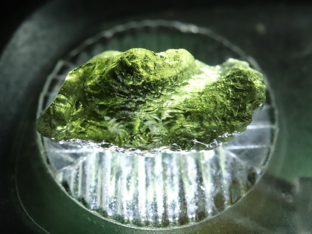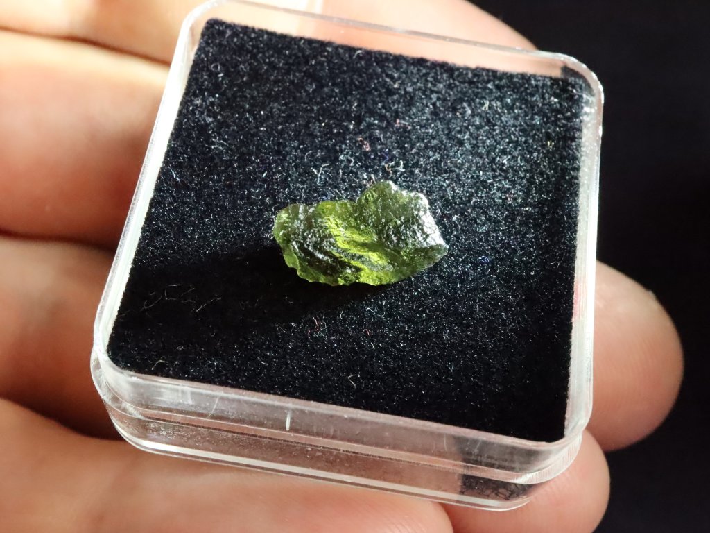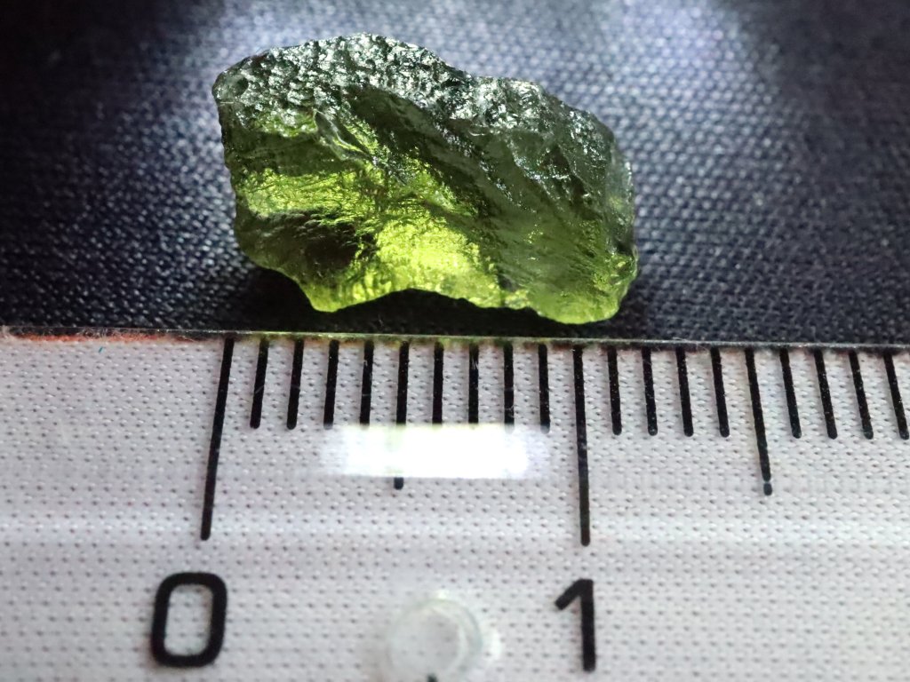Vltavínek pochází ze strašího nálezu z oblasti jižních Čech a může se pochlubit váhou 0,53 gramu.