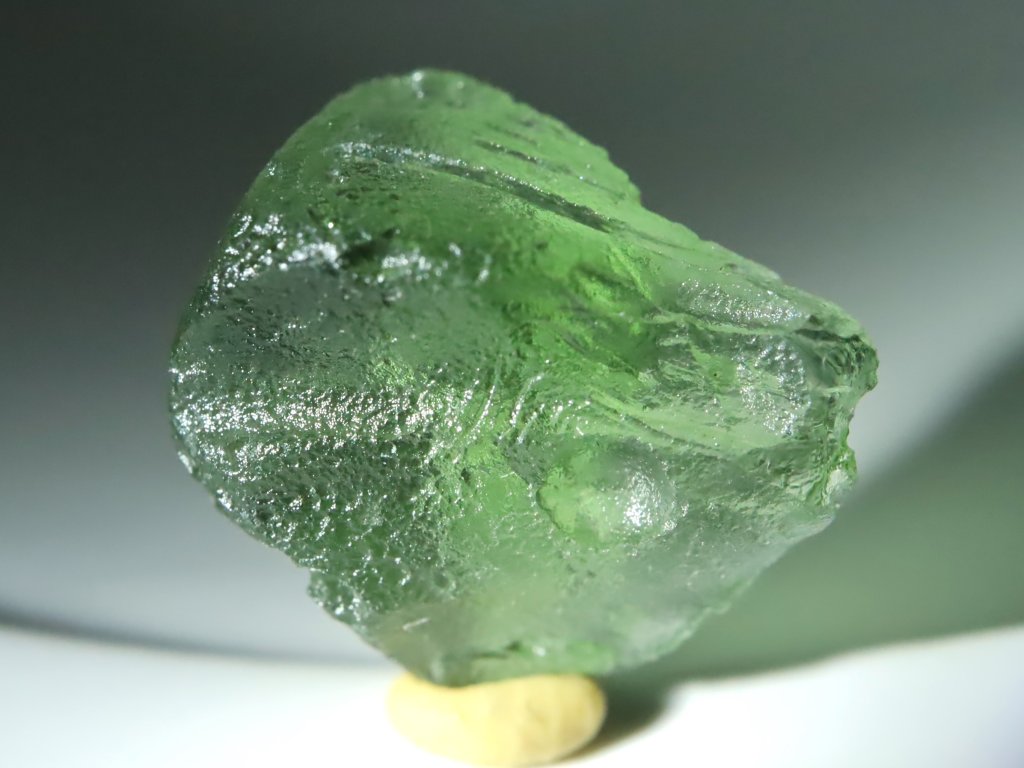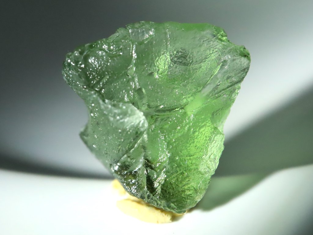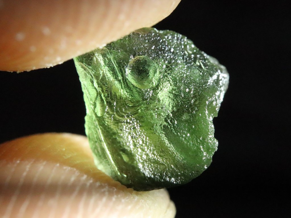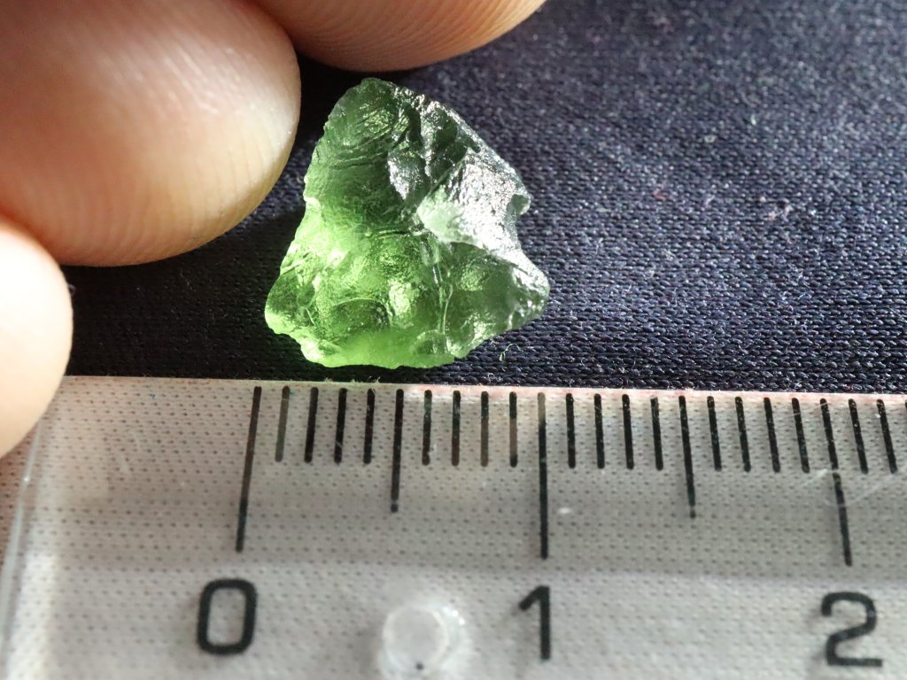 Přírodní vltavín (moldavit) s váhou 0,53 gramu, nalezený v oblasti jižních Čech.