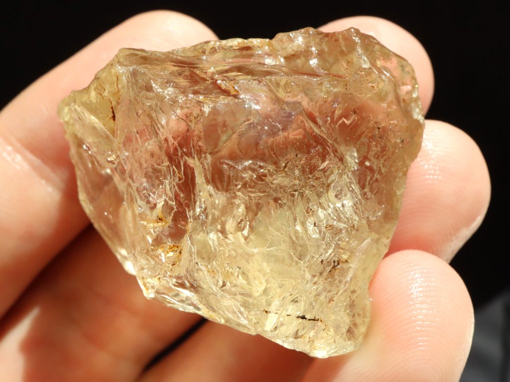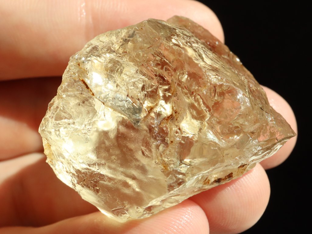 Citrín je sluníčkem či baterkou celý skvěle průsvitný, lesklý povrch pak dovoluje i částečně nahlédnout do vnitřního světa, kde se ukrývá vysoká až drahokamová čistota.