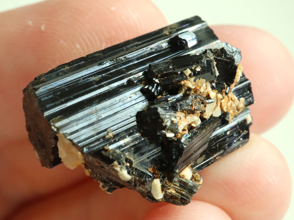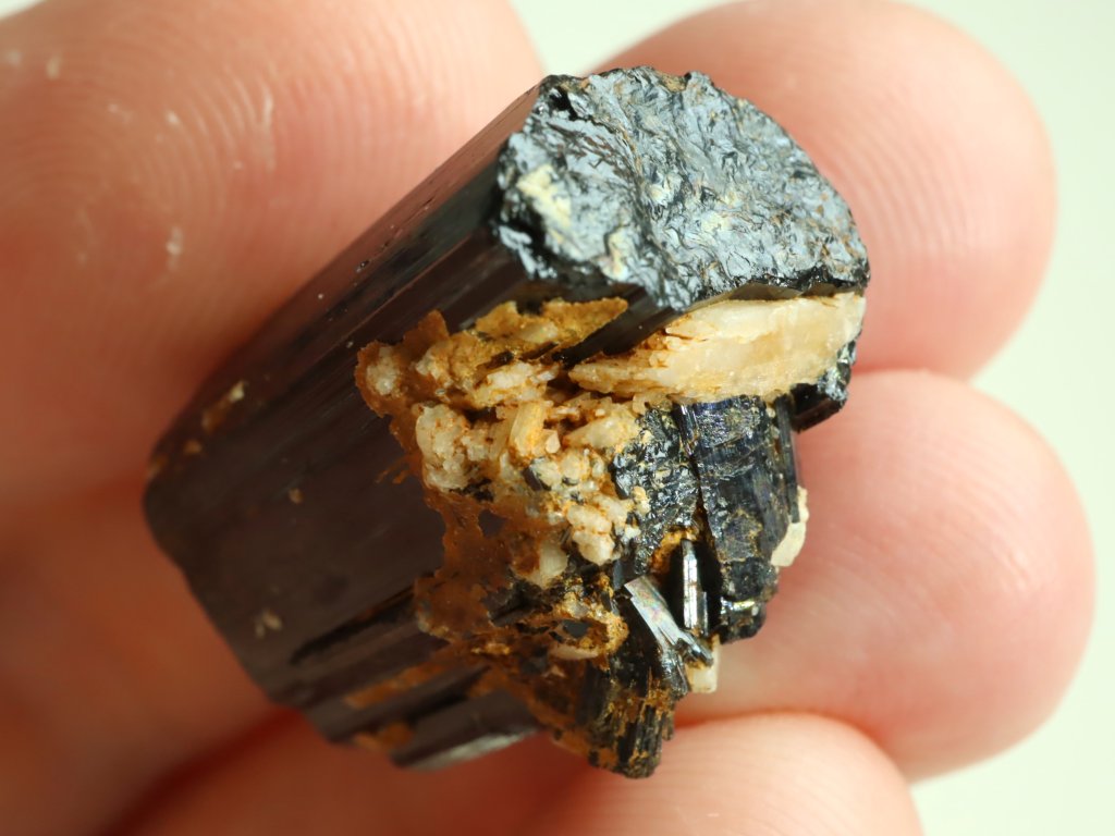 Pěkná ukázka přírodního černého turmalínu skorylu nalezeného na okolních zoraných polích obce Pikárec na Vysočině.