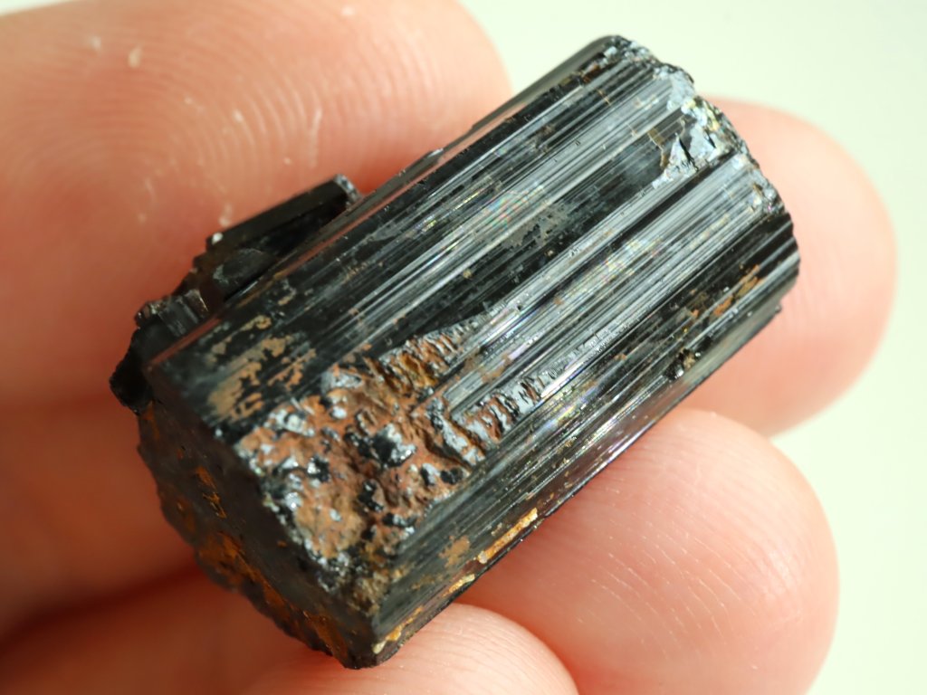 Lesklý jemně rýhovalý váleček černého turmalínu skorylu - Vysočina