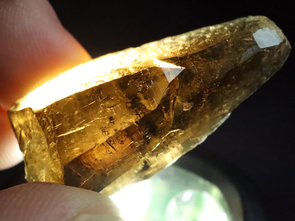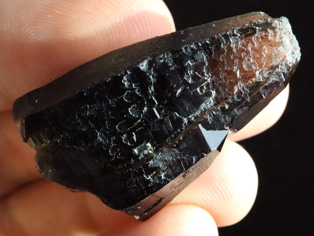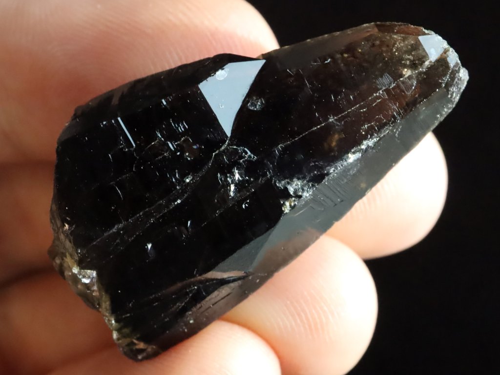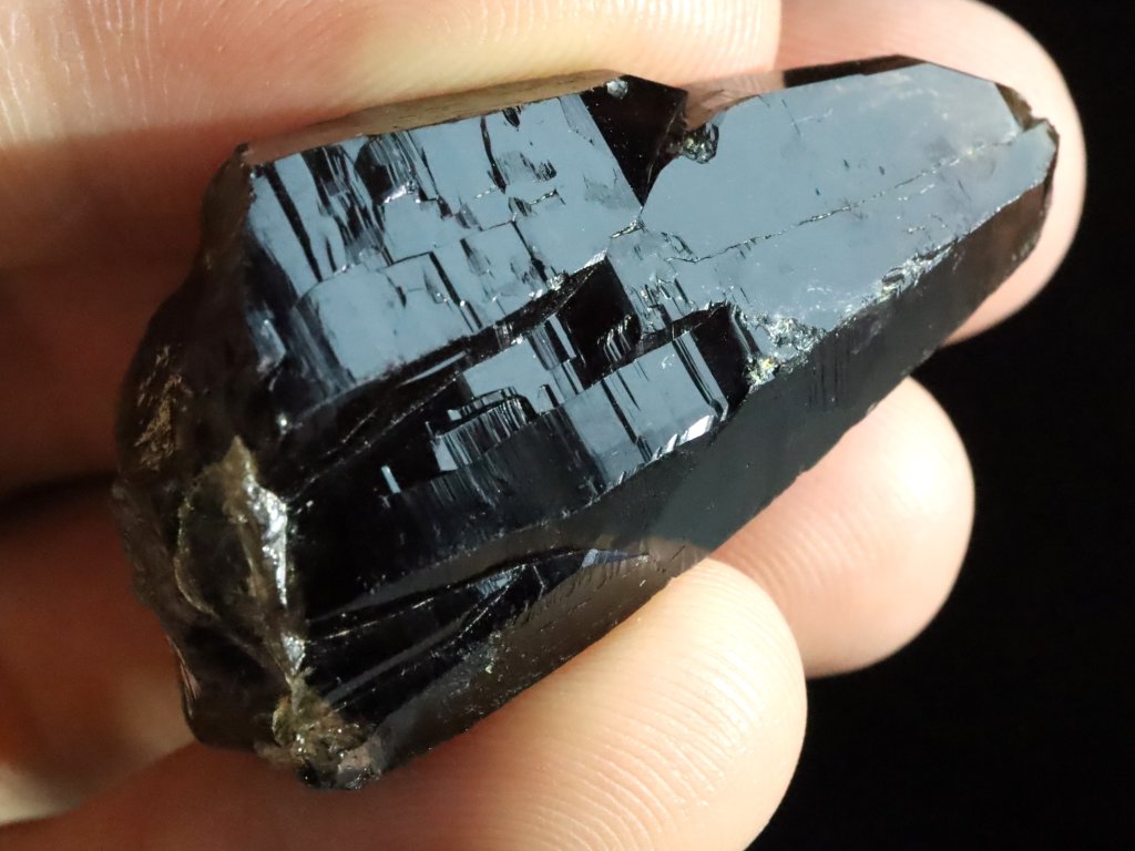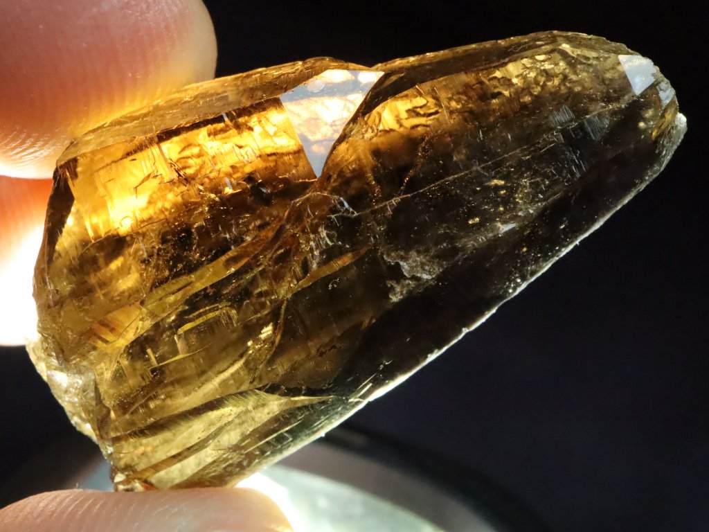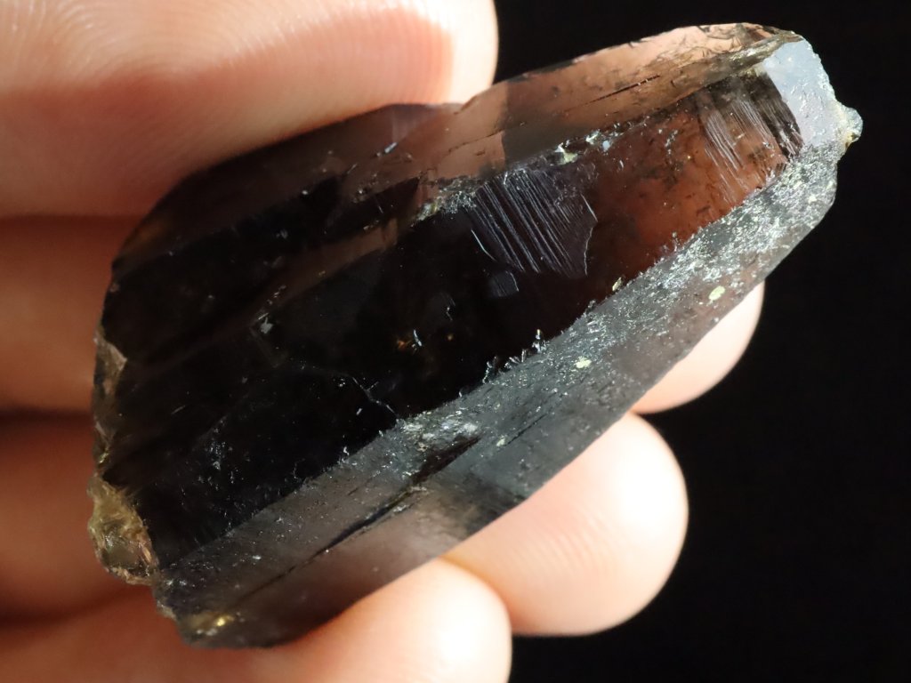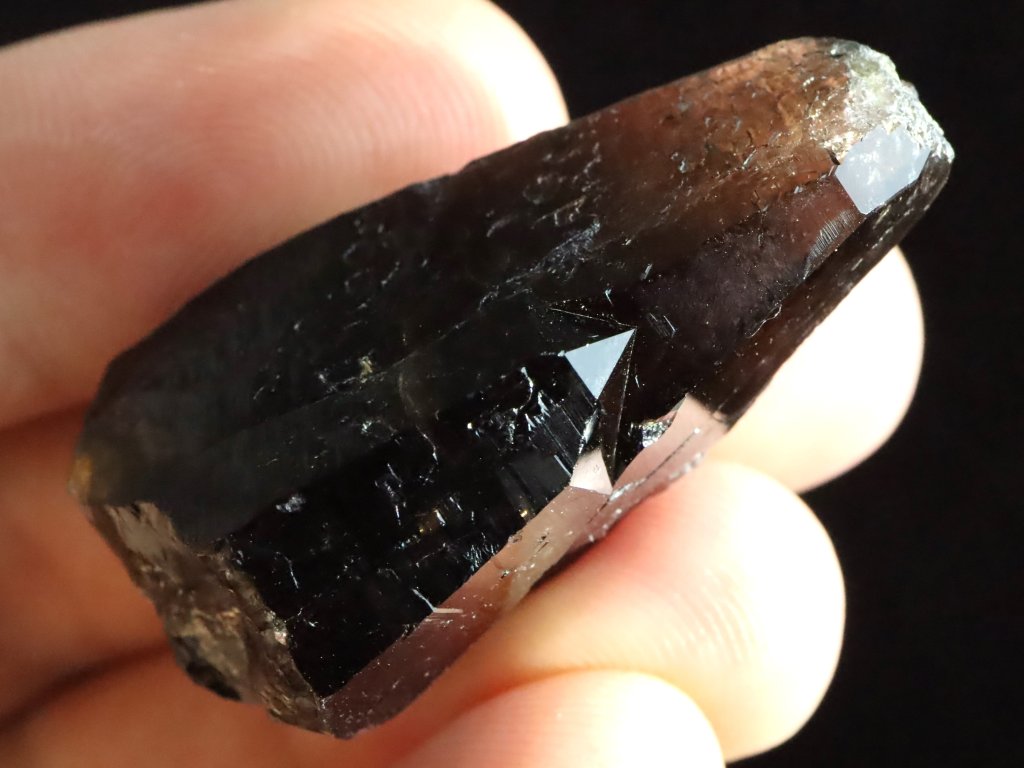 Lesklý krystalek morionu s úžasnou barvou při prosvícení