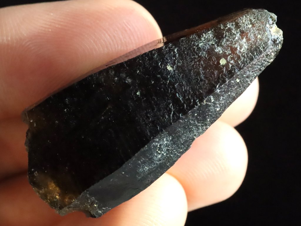 Jedná se o krystal morionu s délkou 4 centimetry. Krystal má moc hezky zachovalé obvodové stěny, samotný vrchol špice je pak sice odřený, i přes to však tento vzorek vypadá velice atraktivně.