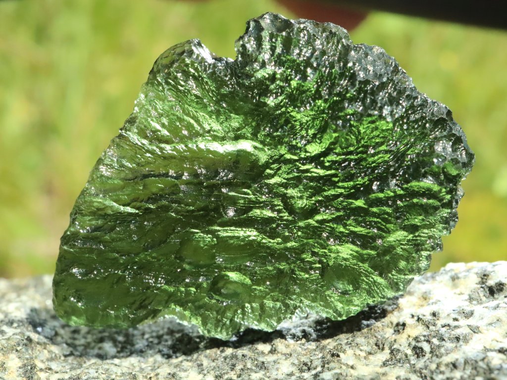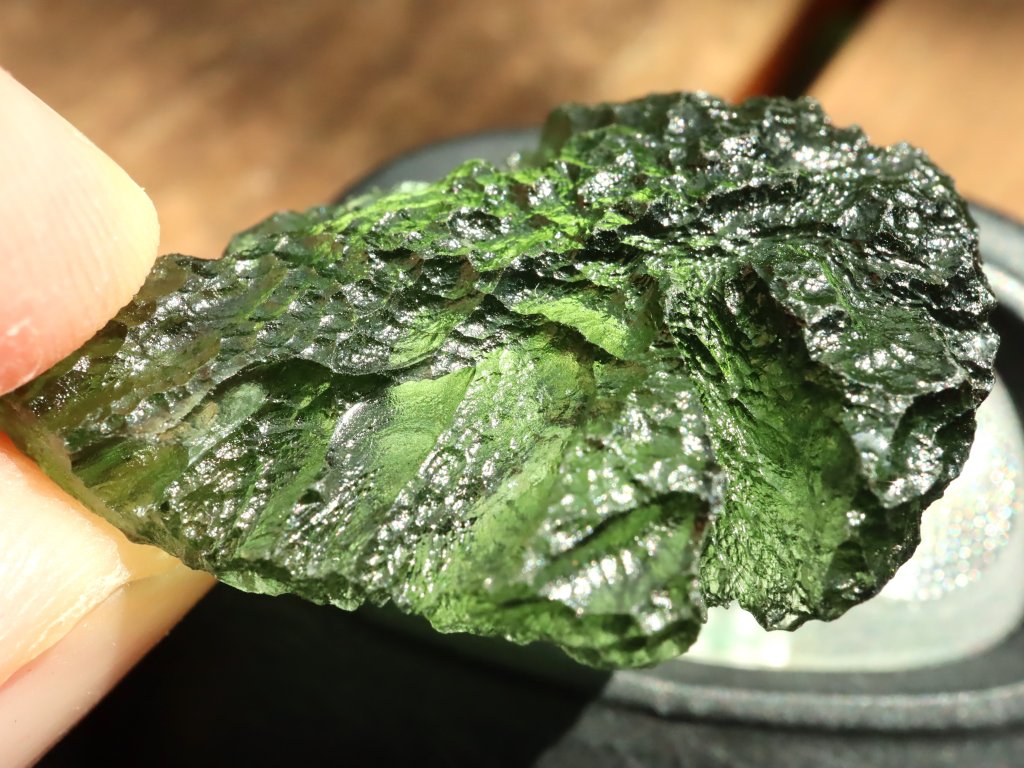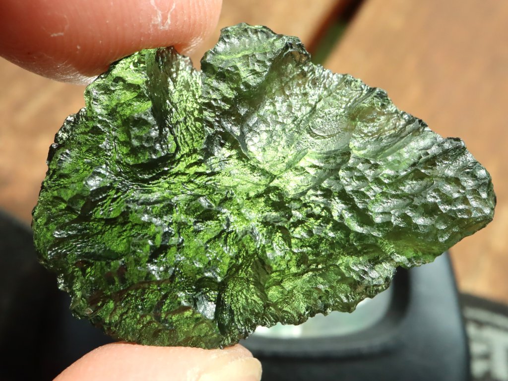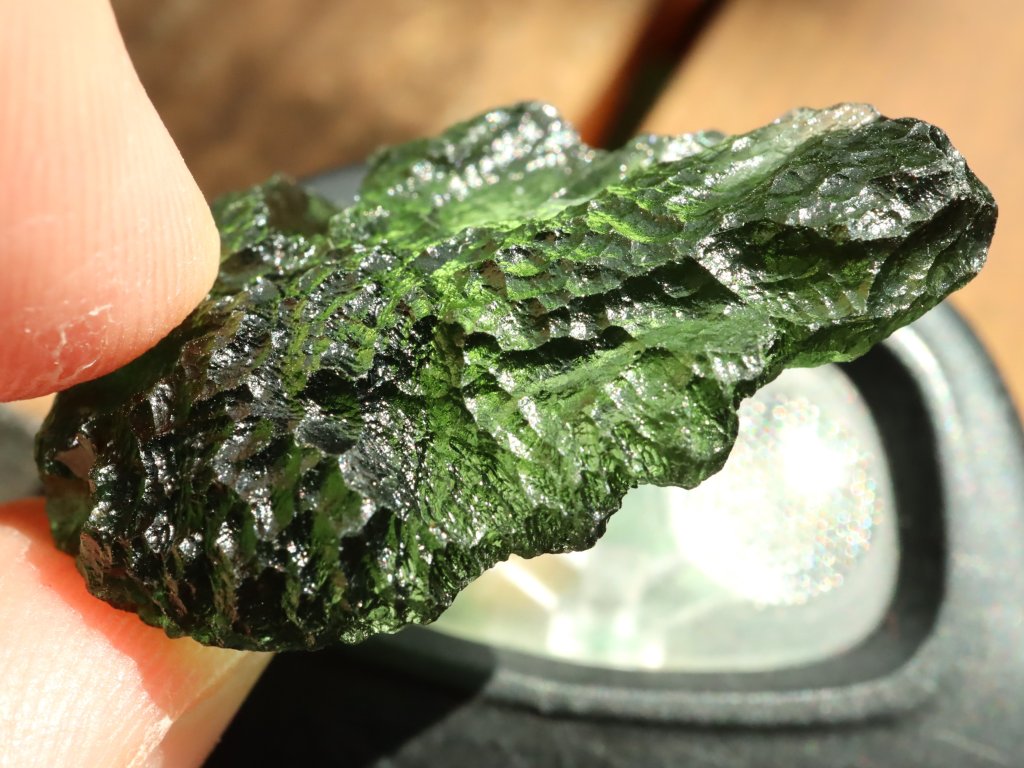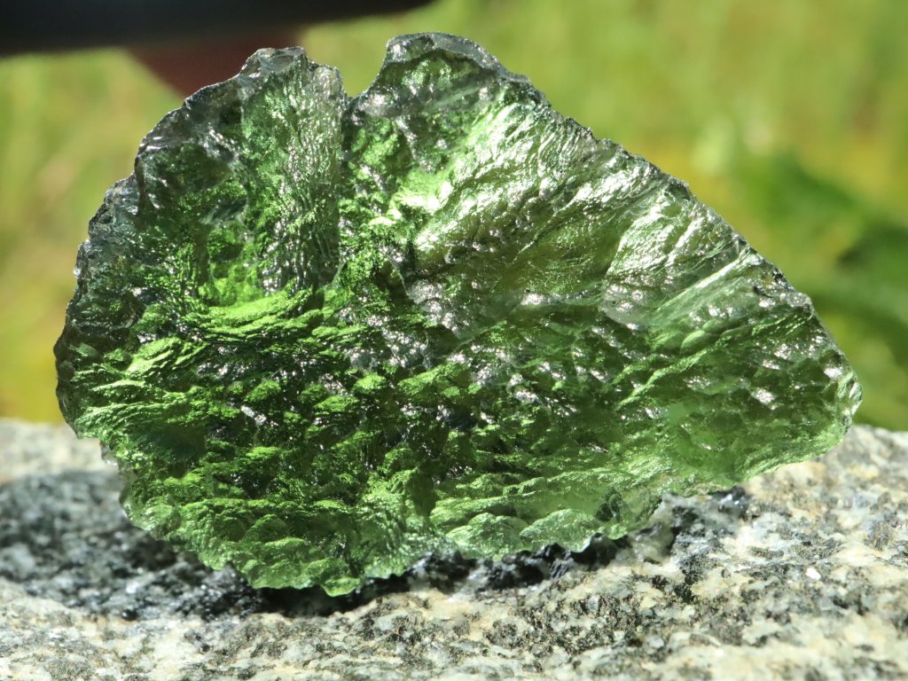 Exkluzivní ukázka pravého českého vltavínu s váhou 9,99 gramu.