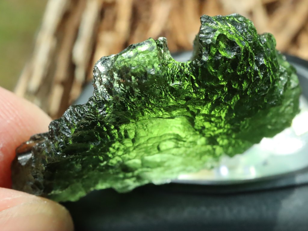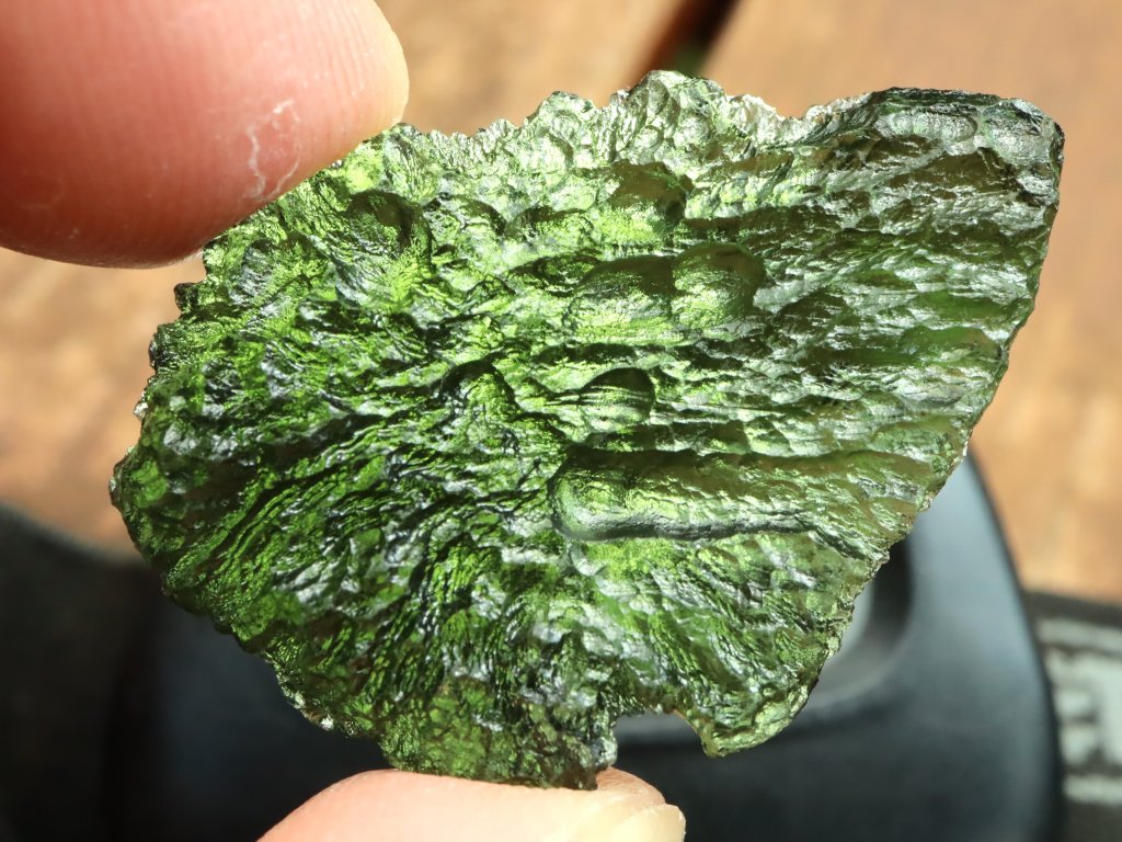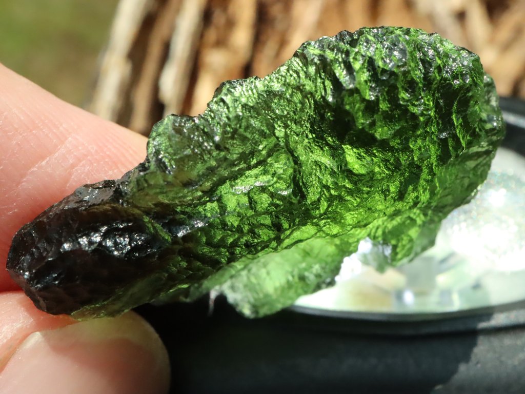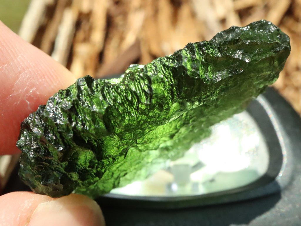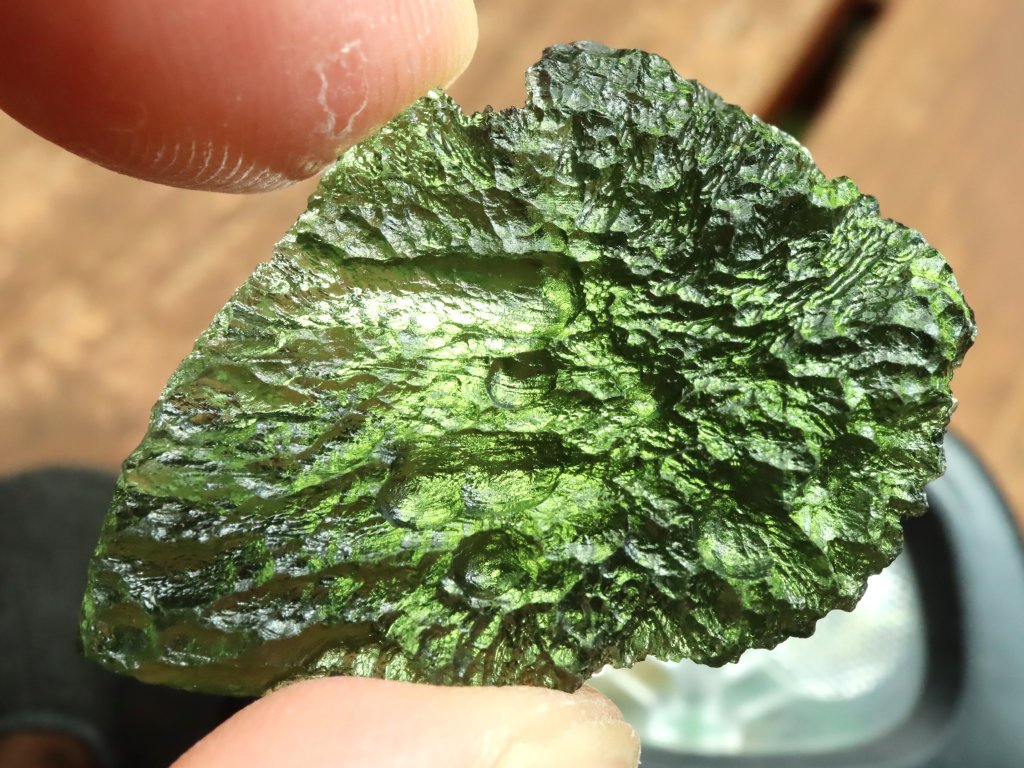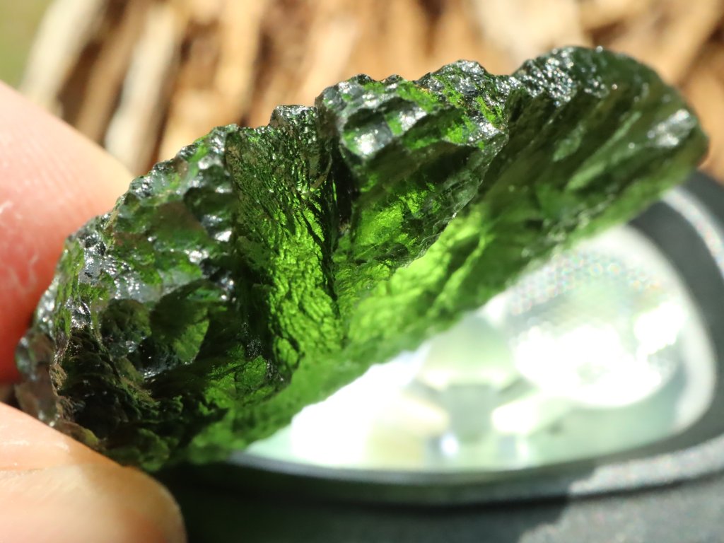 Exkluzivní ukázka pravého českého vltavínu s váhou 9,99 gramu.