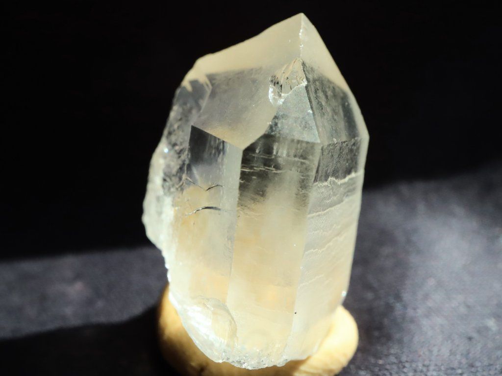 Jedná se o samostatný menší buclatý krystalek křišťálu, který má slušně zachovalé obvodové stěny i samotnou špičku. Krystal se sice zřejmě nezachoval v celé své (původní) délce, i přes to však vypadá velmi atraktivně.