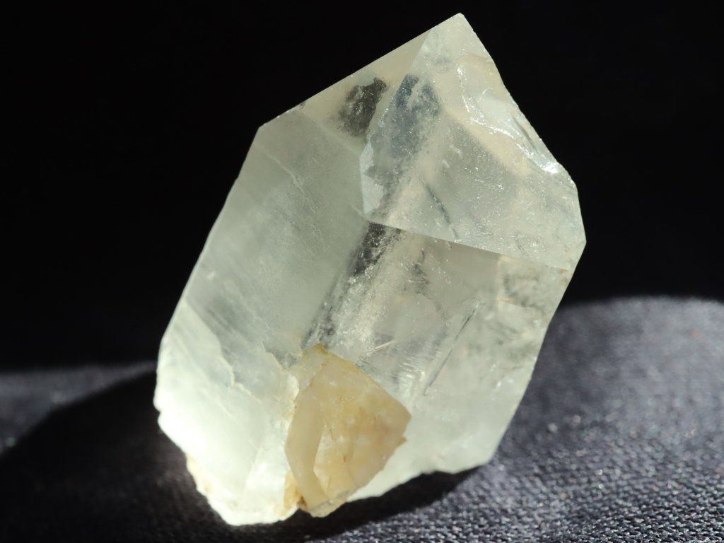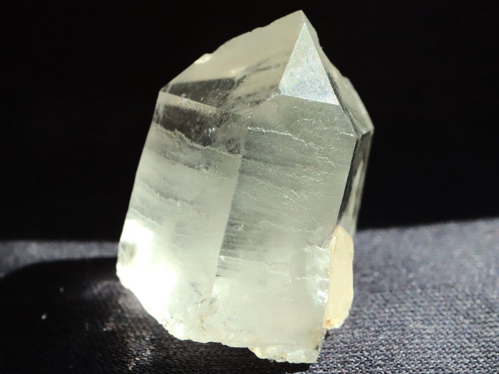 Na sluníčku má křišťálek krásně bílý skoro až ledový odstín, a uvnitř se pak pyšní vysokou až drahokamovou čistotou s pouze decentním mlhovinovým závojem.