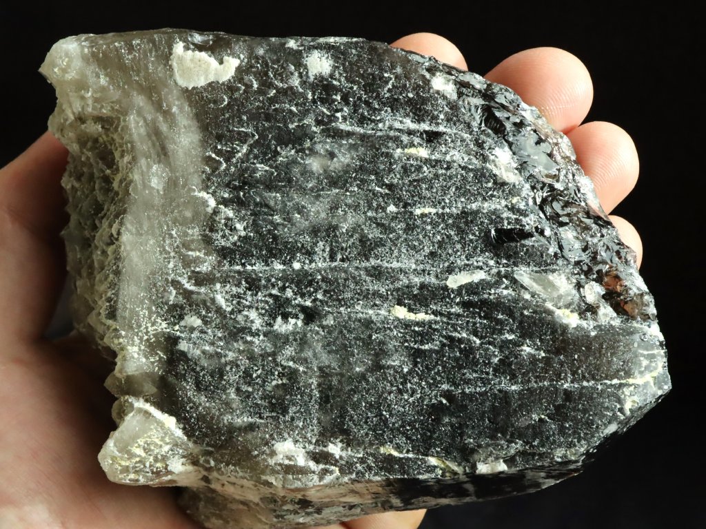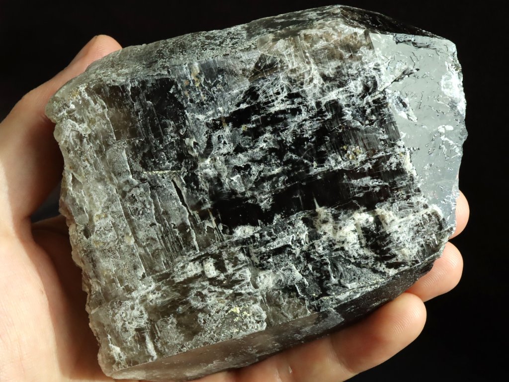 Morion má kvalitní černý odstín, místy doplněný decentním povlakem mléčného křemene.