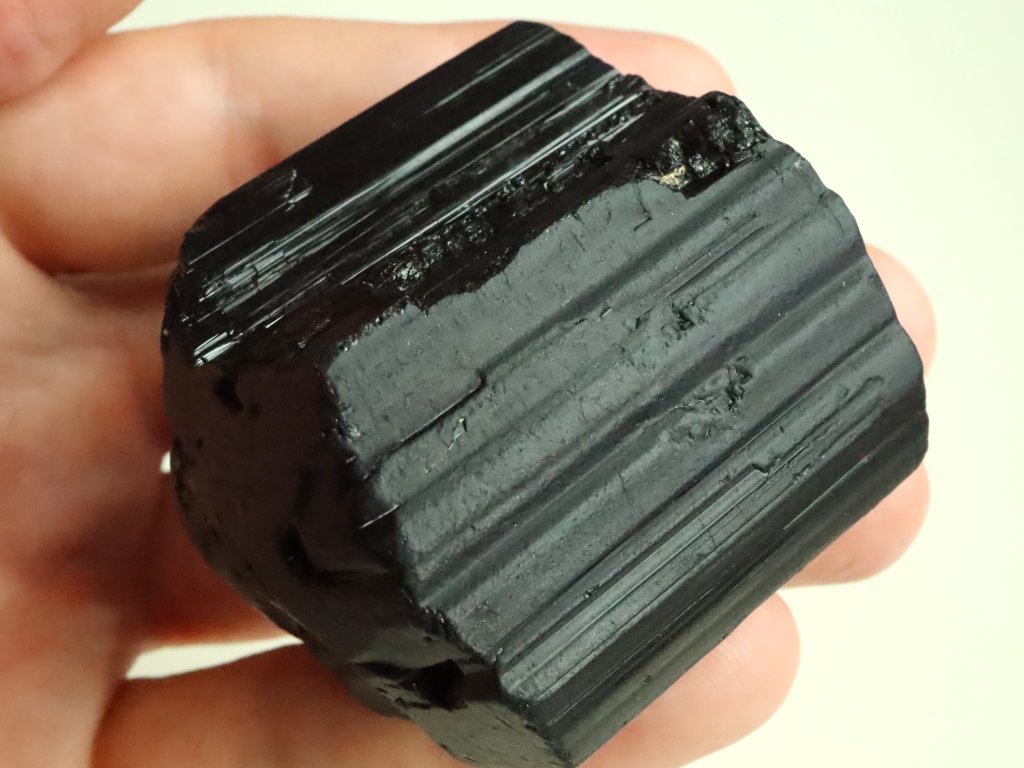 Velice zajímavý je také povrch turmalínu, ten je totiž téměř celý matný, lehce skoro až sametově ohlazený a příjemný na dotek. Takto omleté vzorky černých turmalínů jsou docela vzácností, a v přírodě na ně jen tak nenarazíte.