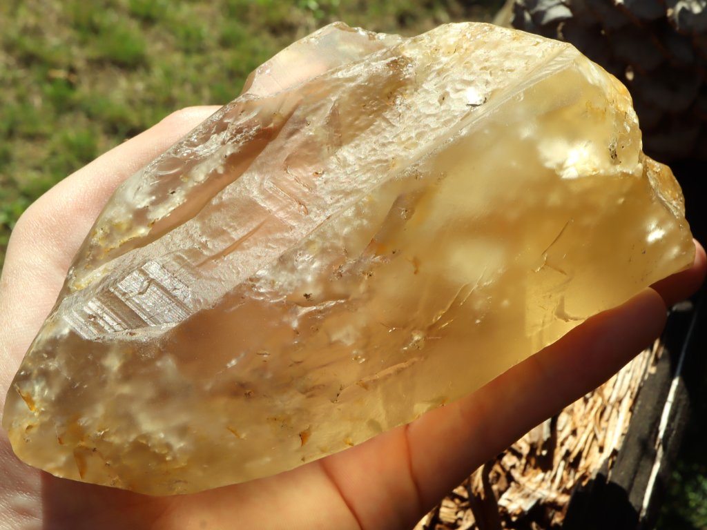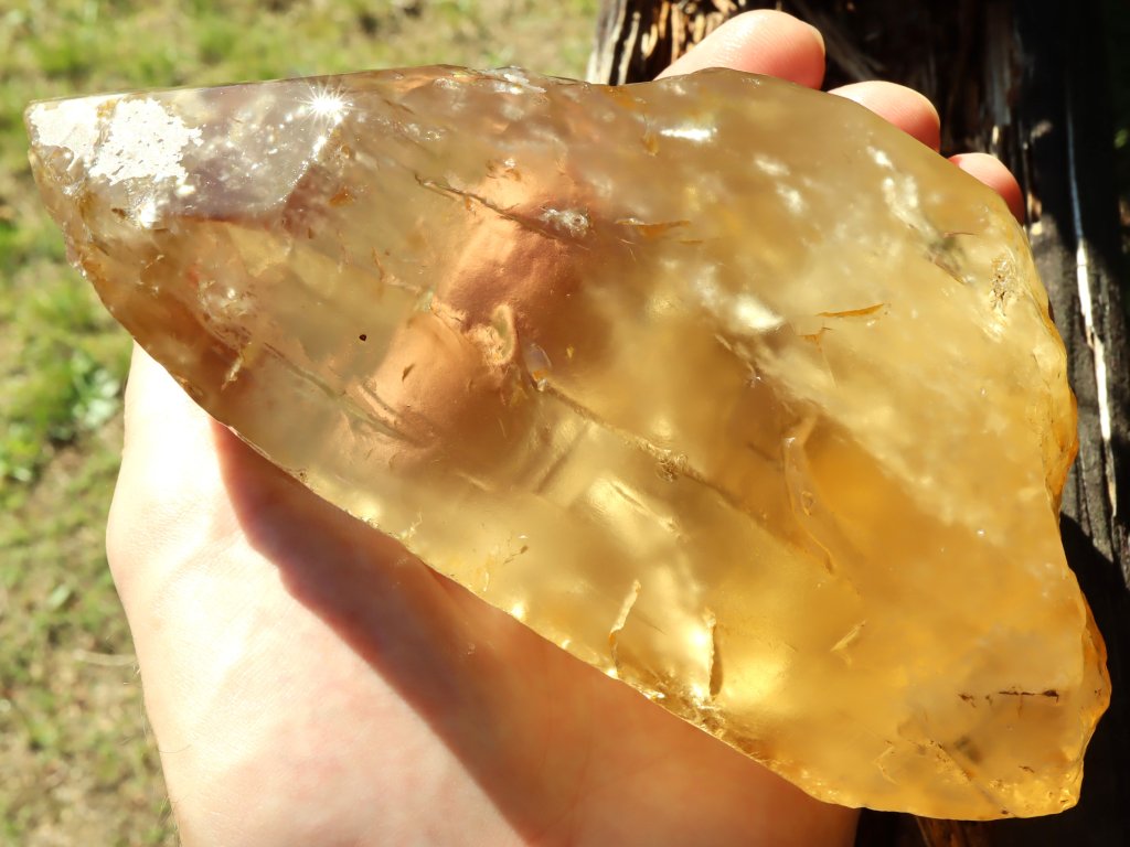 Ti pozornější z vás pak těsně pod povrchem spatří i drobné duhové odlesky (především když je citrín mokrý).
