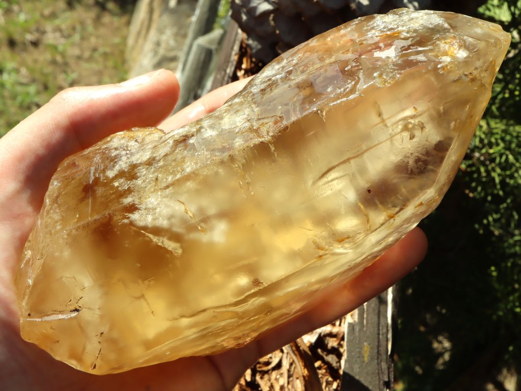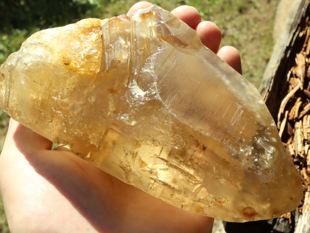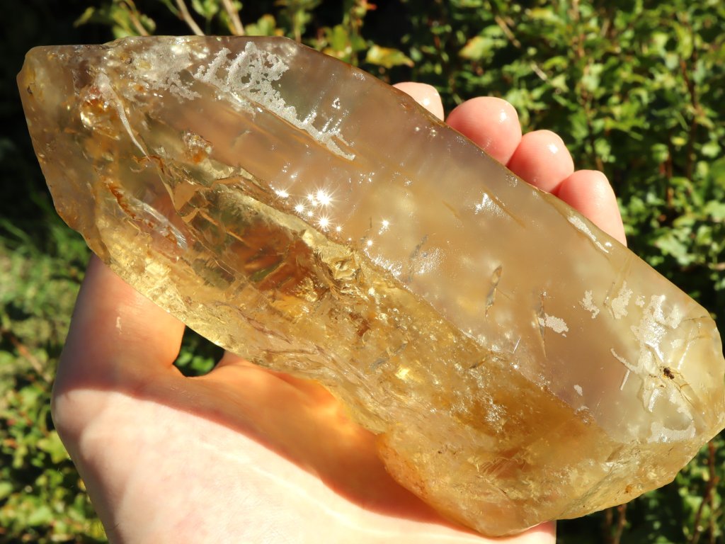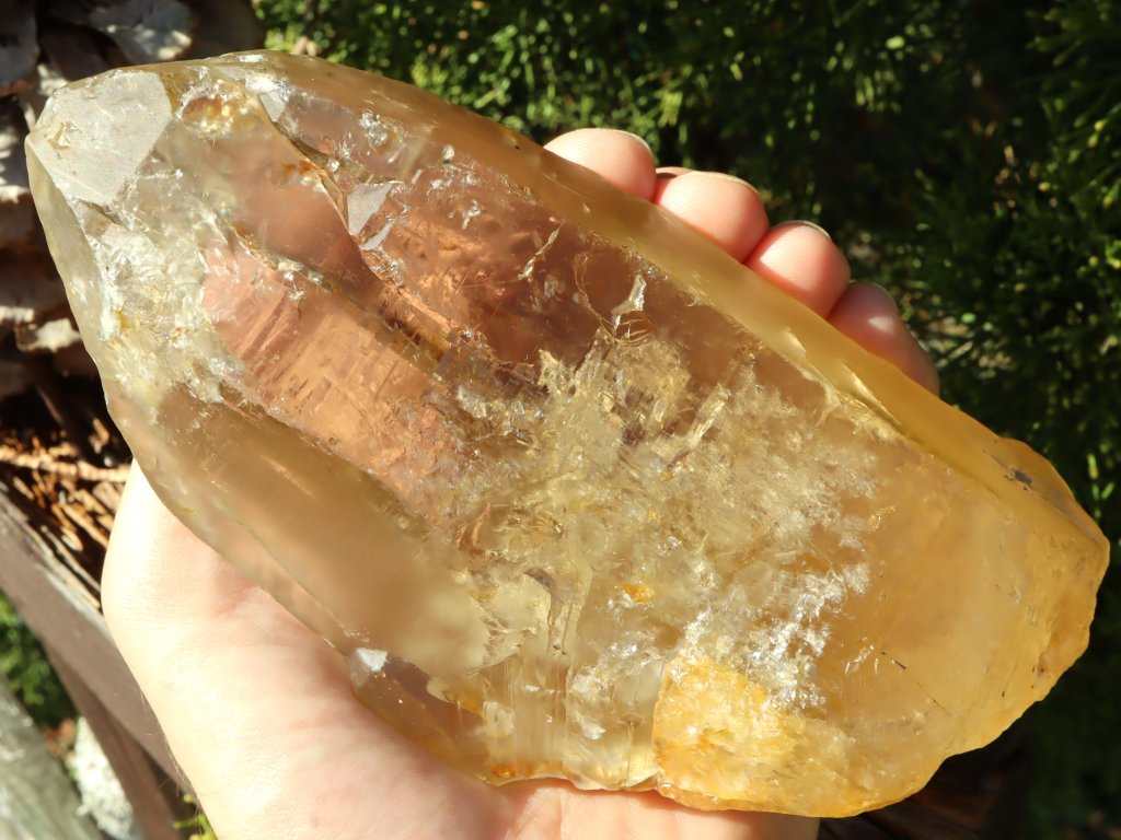 Jedná se o velký krystal citrínu, který se pyšní délkou neuvěřitelných 15 centimetrů a váhou téměř 1 kilogram (přesně 950 ramů), což jsou na český citrín opravdu fascinující hodnoty.