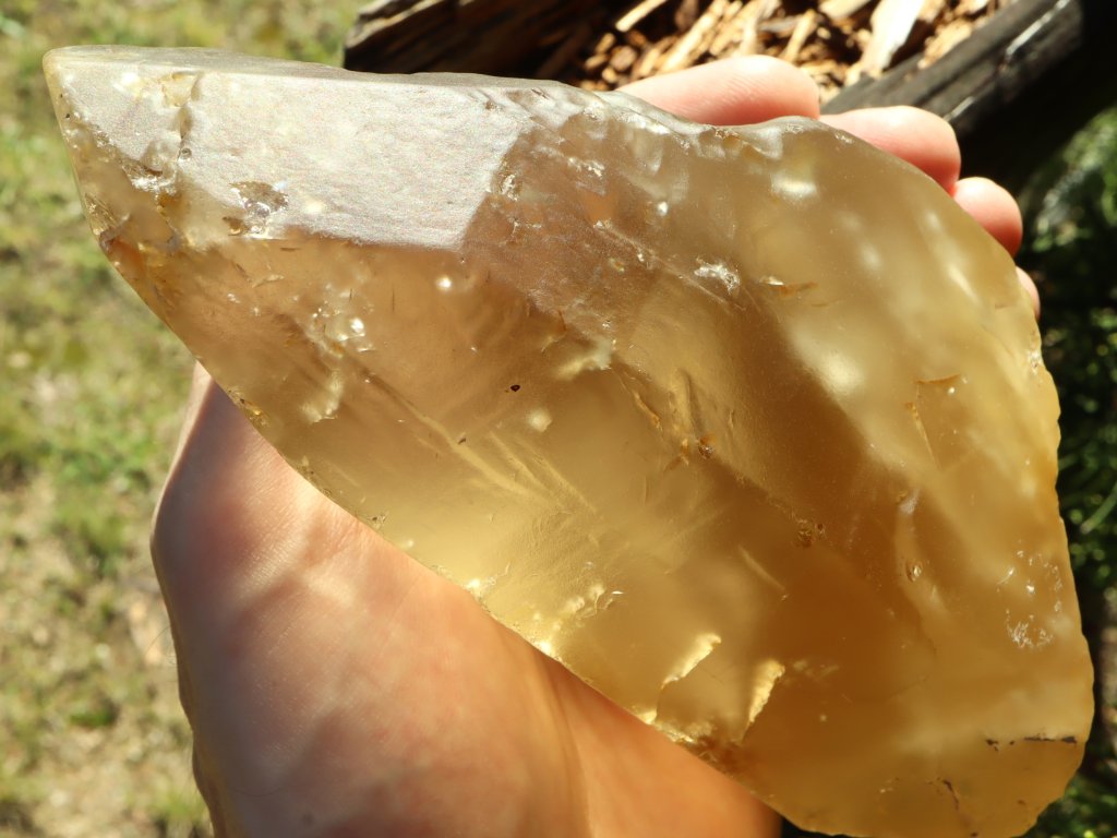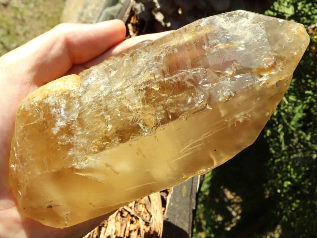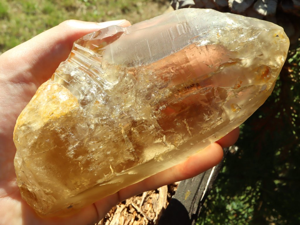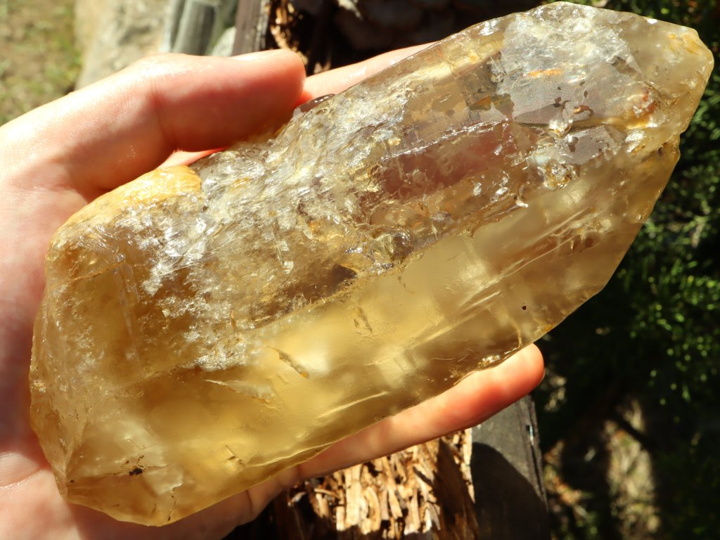 Jedná se o velký krystal citrínu, který se pyšní délkou neuvěřitelných 15 centimetrů a váhou téměř 1 kilogram (přesně 950 ramů), což jsou na český citrín opravdu fascinující hodnoty.