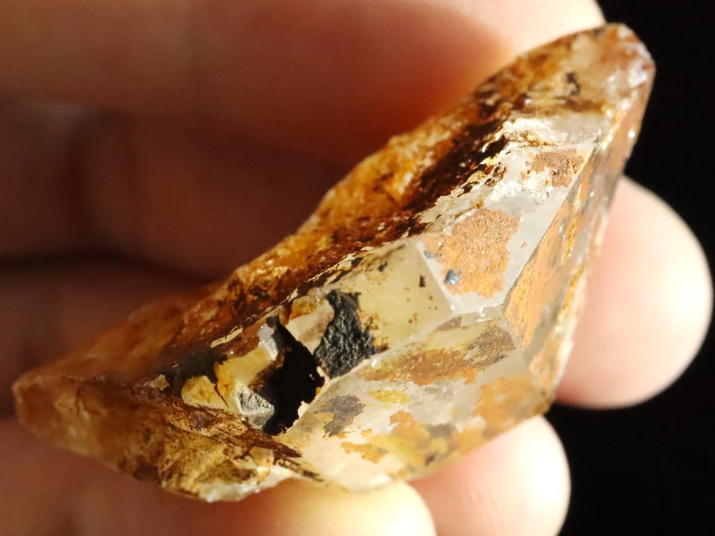 Díky limonitu má tento půlkrystal unikátní "přírodní patinu".