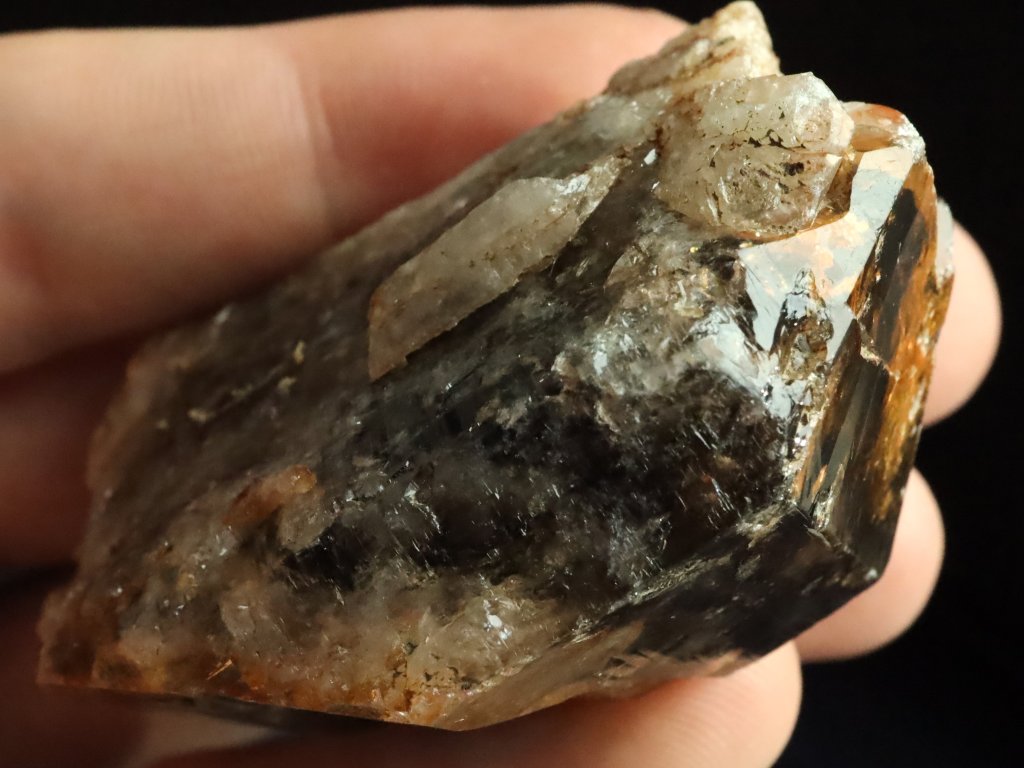 Oboustranný krystal morionu s křemenem a limonitem