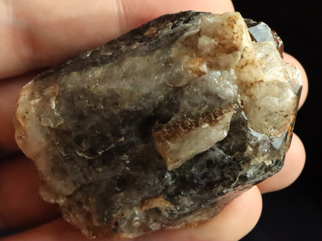 Vzácná temná záhněda označovaná jako morion, nalezená na lokalitě Bohdalec v oblasti Vysočiny.